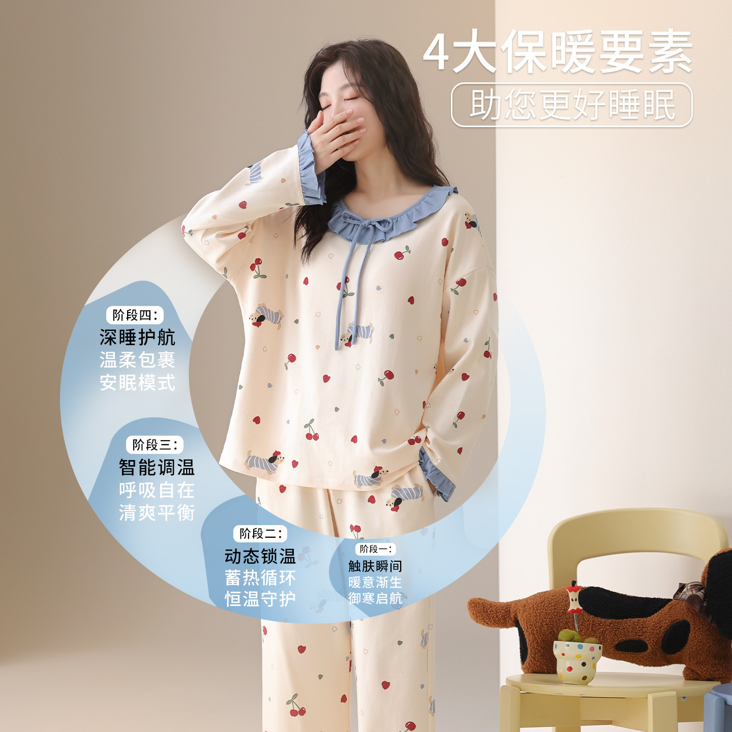 公主风可爱自带胸垫家居服套装 都市丽人纯棉睡衣女款 春秋2026新款