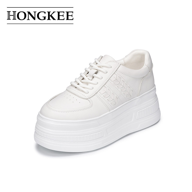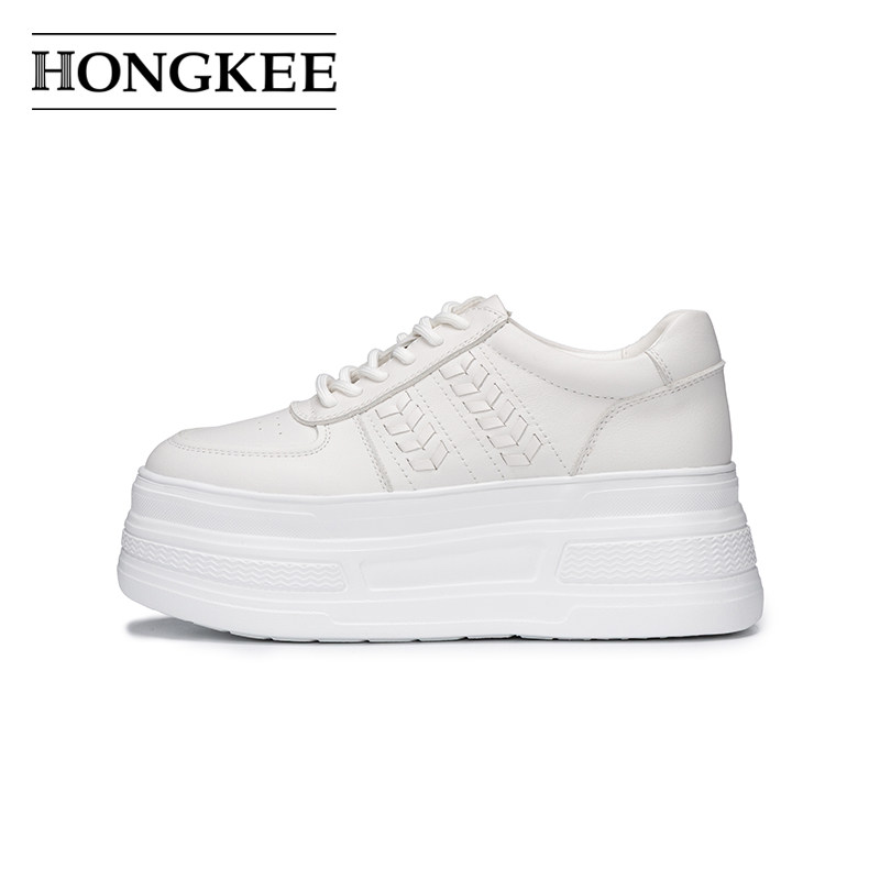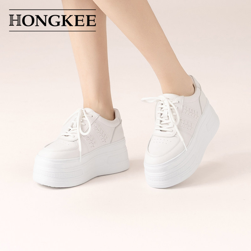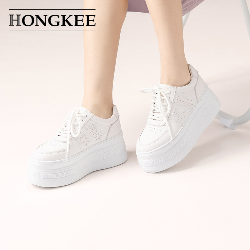 红科单鞋 休闲鞋 女2026春新款 系带时尚 HD96D101 厚底小白鞋 Hongkee