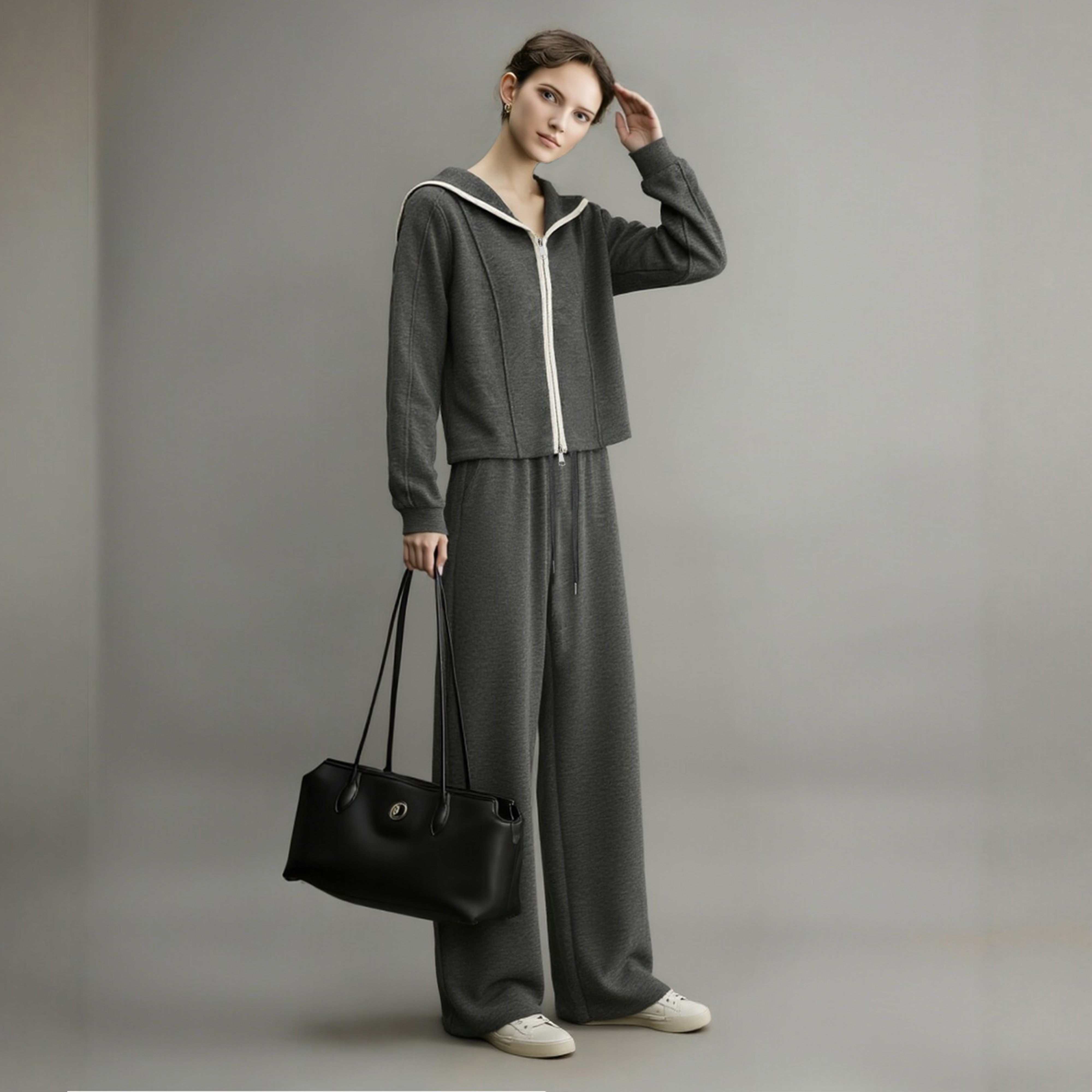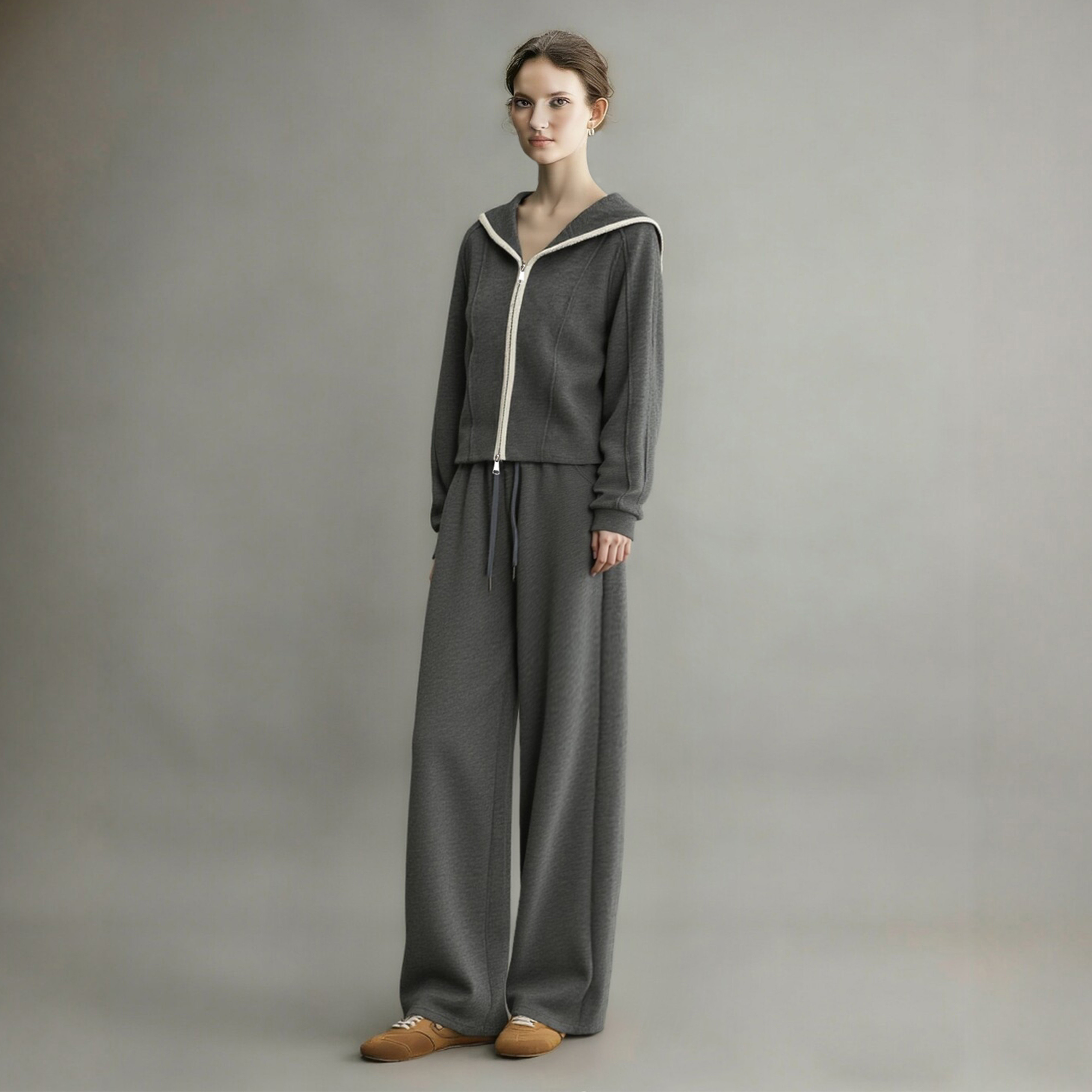 韩系学院风卫衣阔腿裤 新款 休闲风两件套 女2026春季 超洋气运动套装