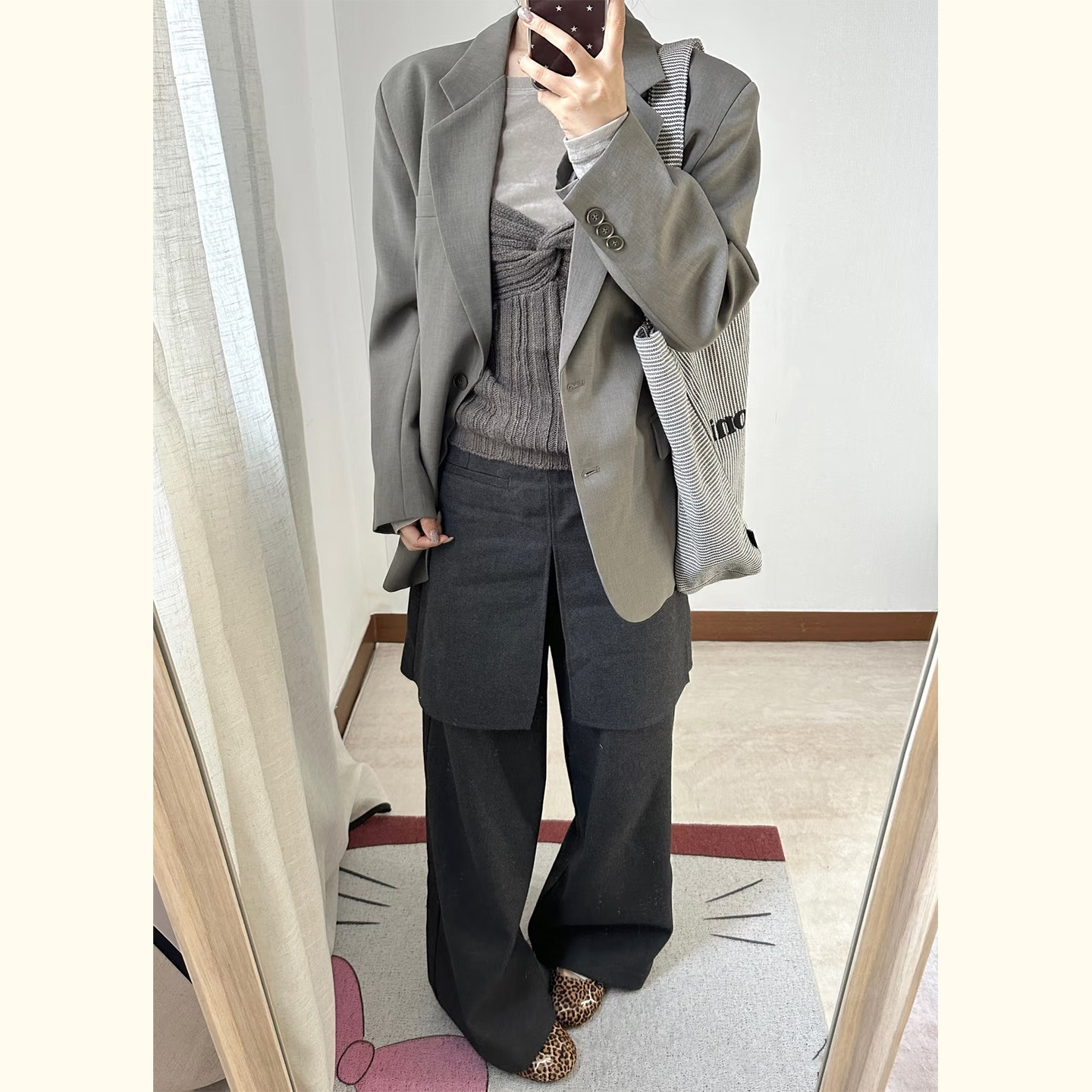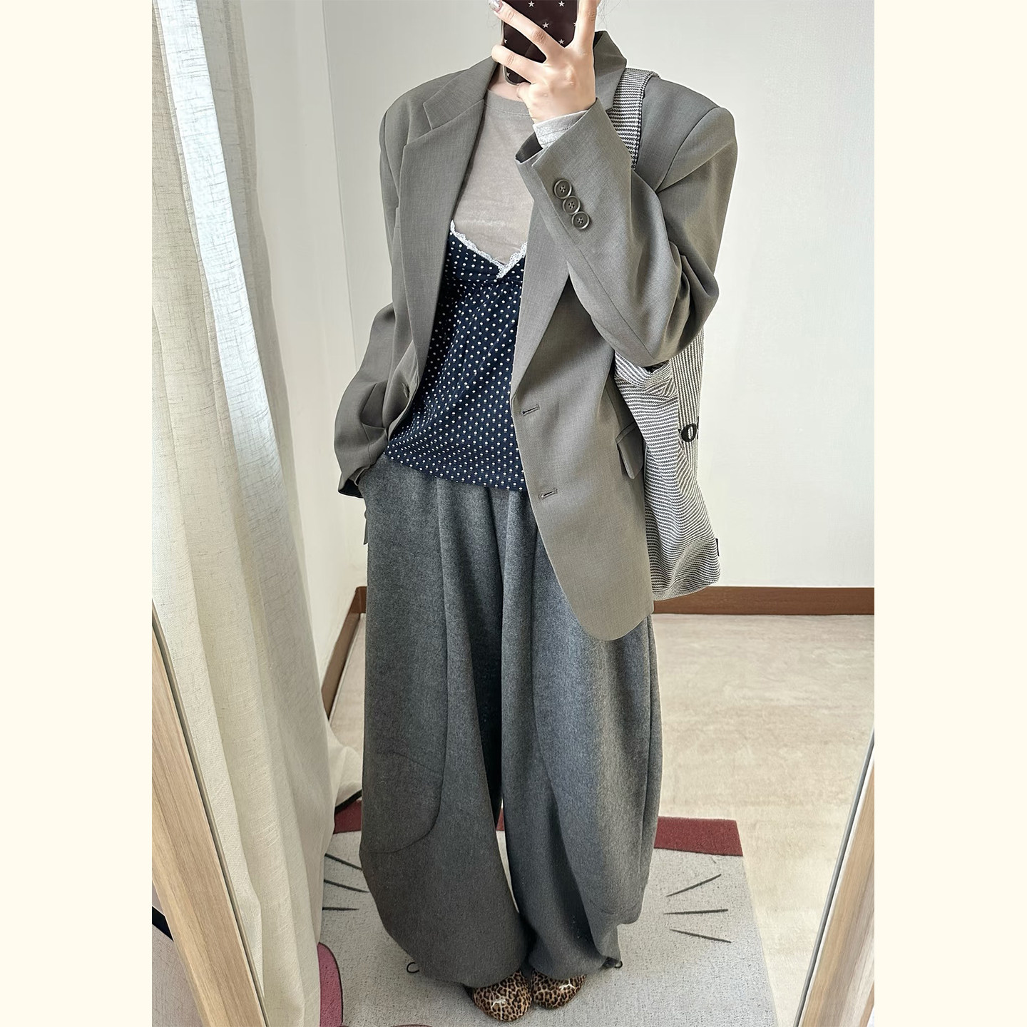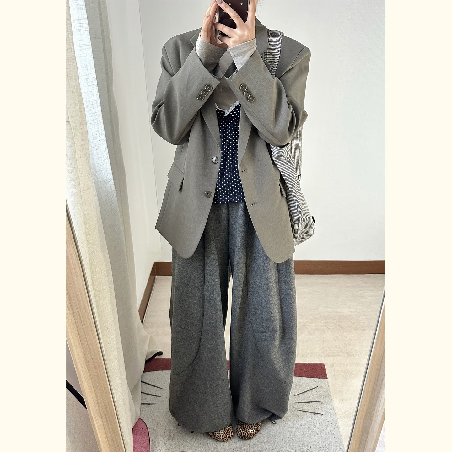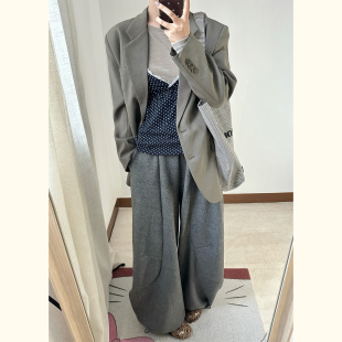 极简风廓形单排扣西装 外套女春秋高级感灰色宽松显示西服职场通勤