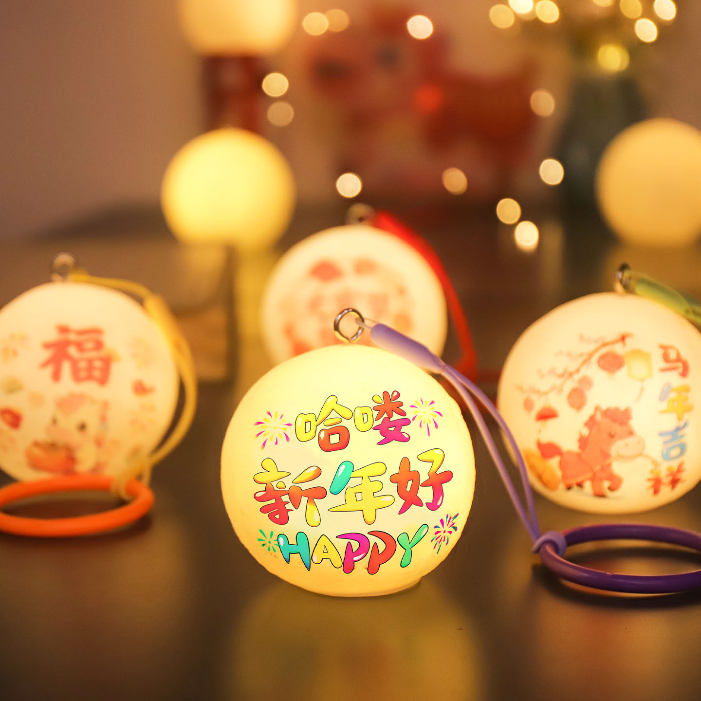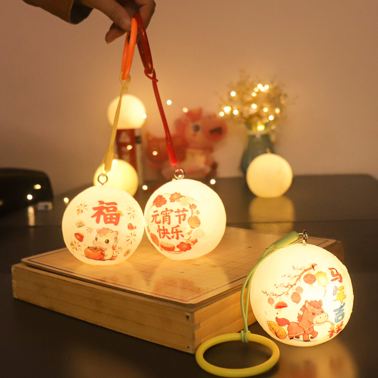 马年元 饰纸灯笼儿童手提发光花灯新年红灯笼挂饰场景小道具 宵节装