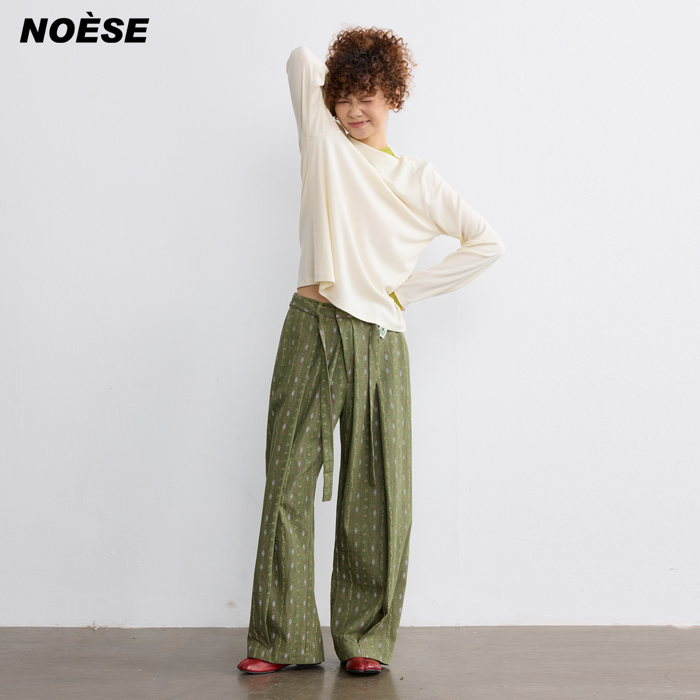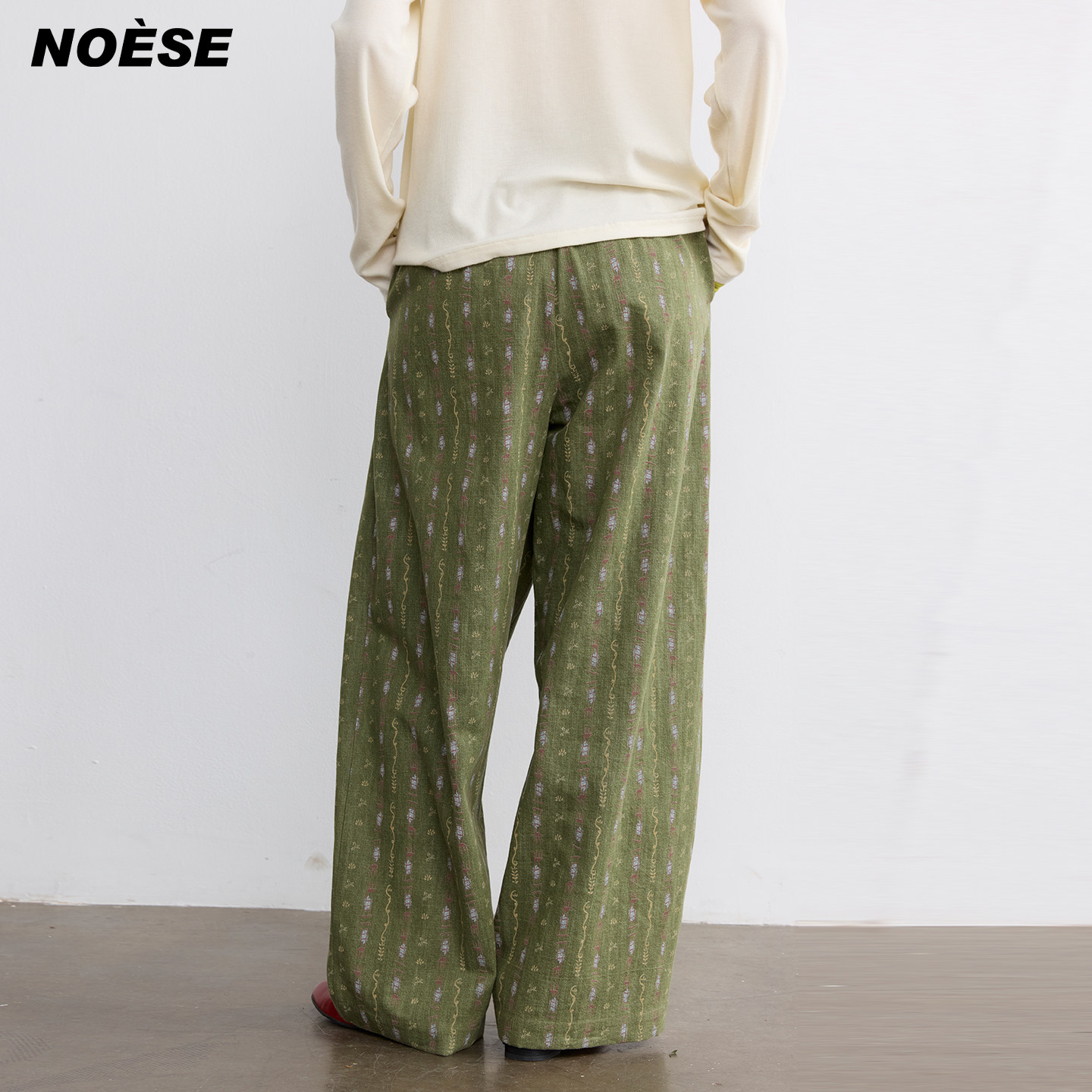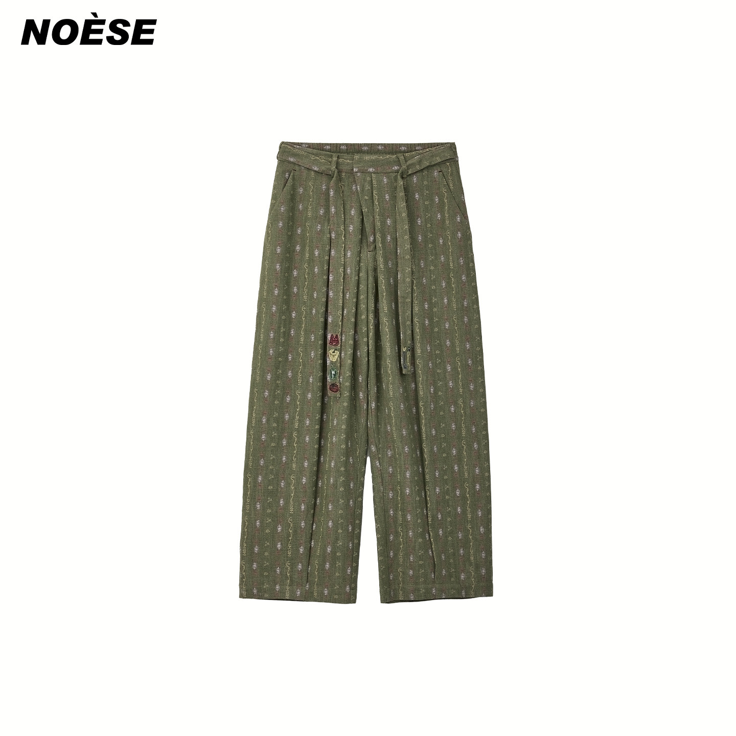 直筒宽松阔腿裤 Noese春日来信 26SS定制品牌印花面料刺绣绑带西裤