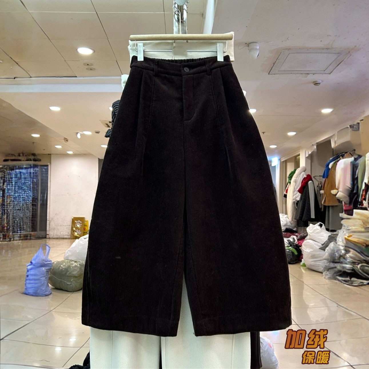 小个子高腰显瘦直筒裤 欧货加厚加绒灯芯绒阔腿八分裤 女2025冬新款