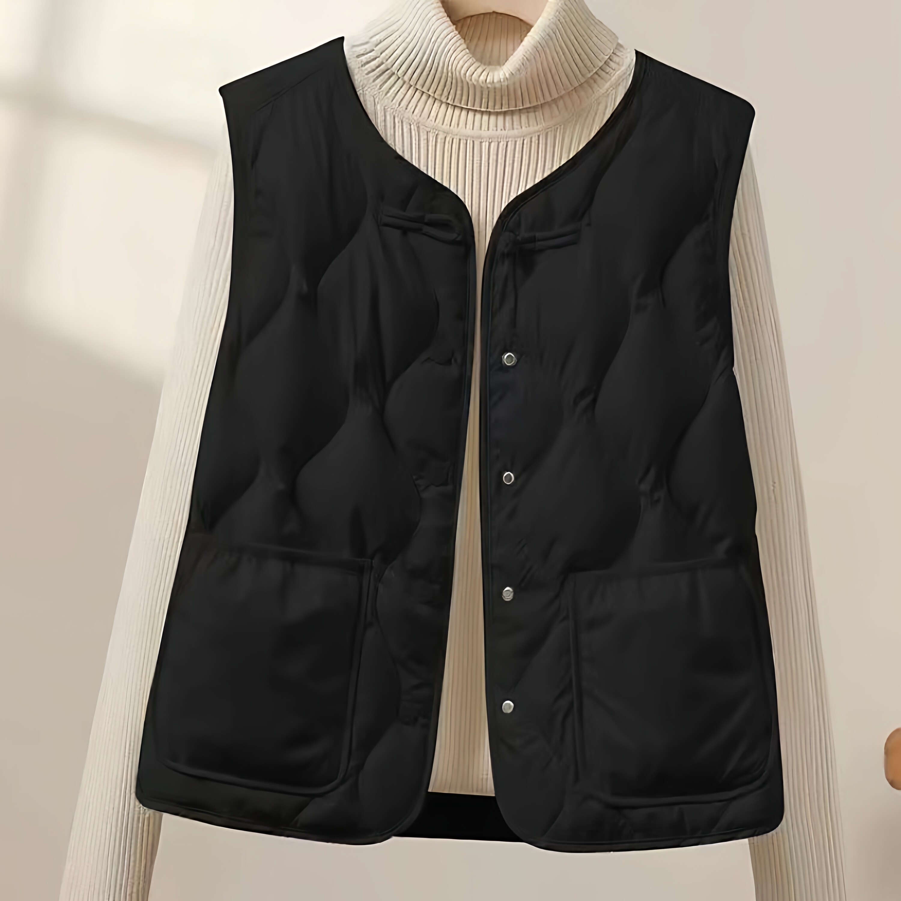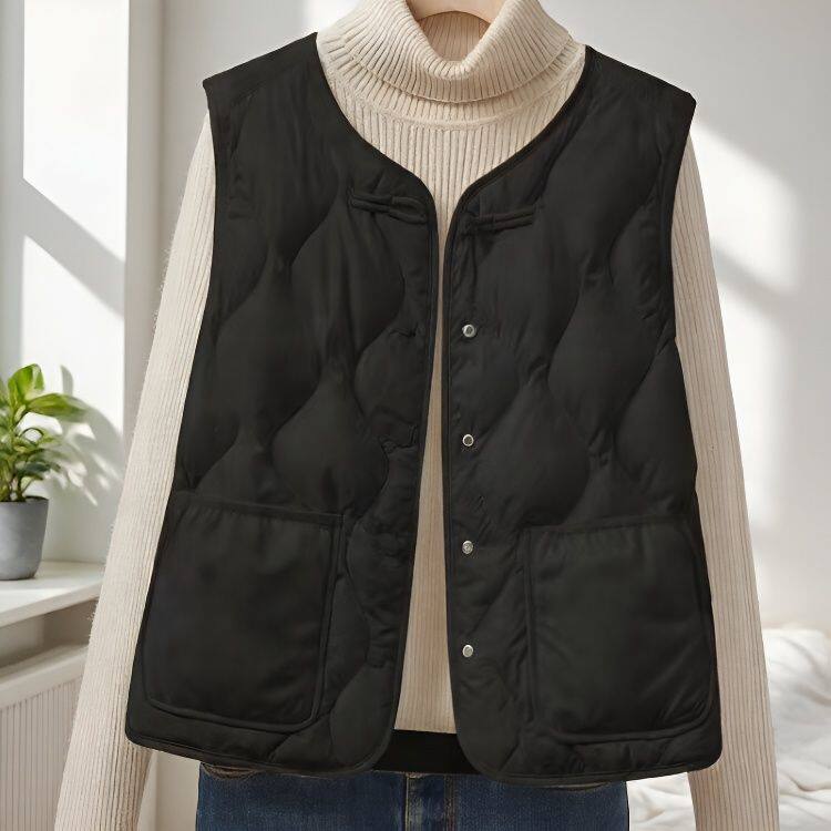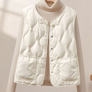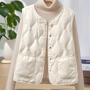 爆款 内搭 简约风黑色轻薄羽绒棉马甲女单排扣圆领保暖叠穿背心时尚