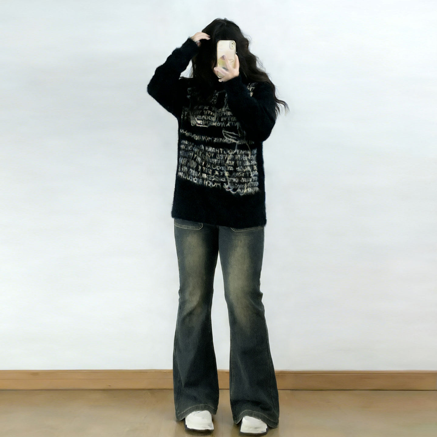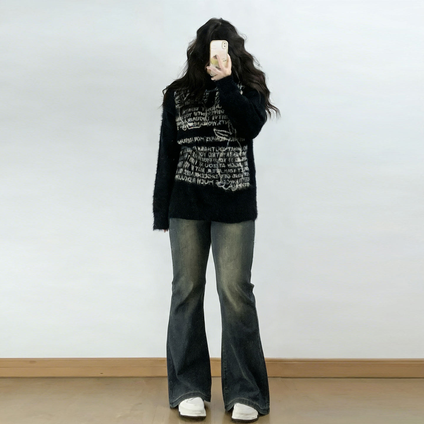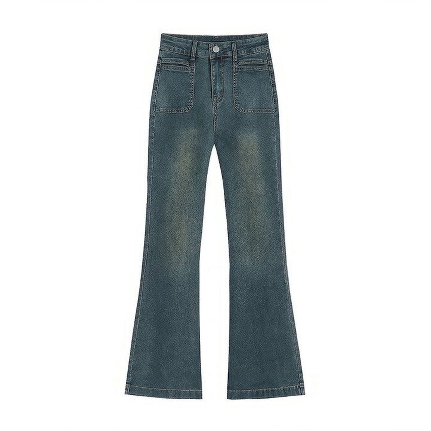 女装 百搭喇叭裤 复古蓝弹力修身 女胖mm梨形报恩裤 子 微喇牛仔裤 大码