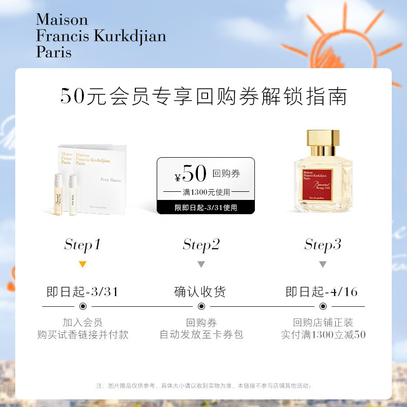 50元 梵诗柯香MFK星品香氛体验礼2ml 回购券 天猫U先