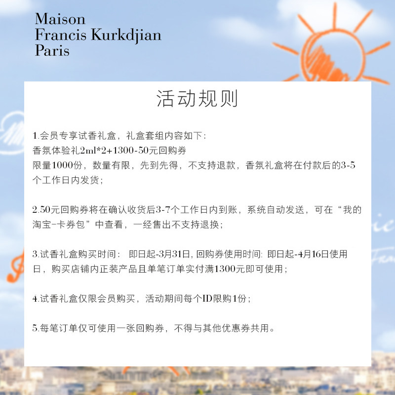 店铺掌柜:  MaisonFrancisKurkdjian梵诗柯香官方旗舰店