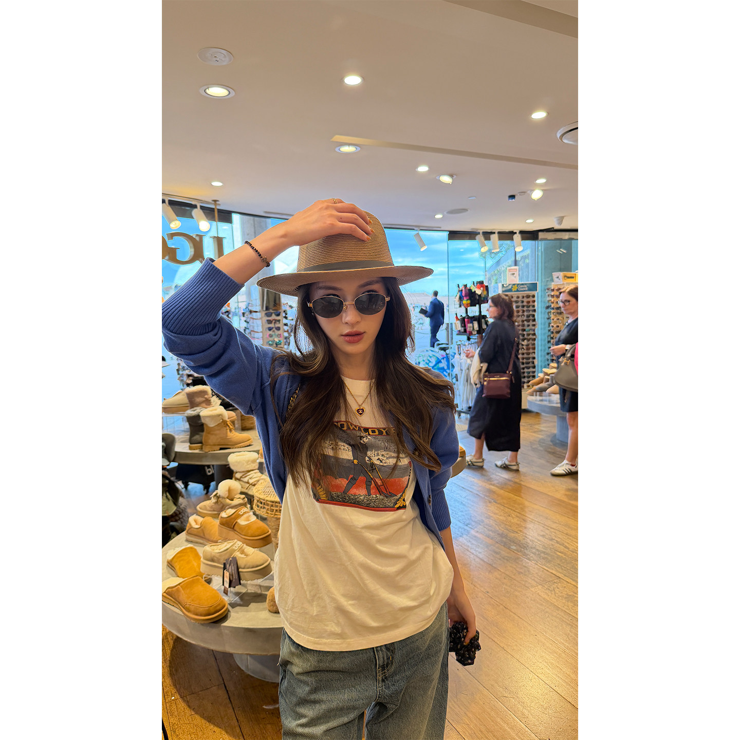 宽松圆领纯棉时尚 炽火火 美式 t恤女2026新款 上衣 复古做旧印花短袖