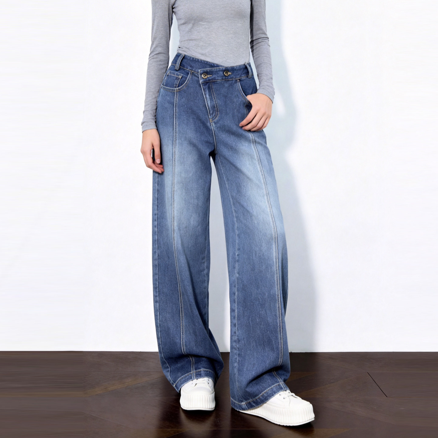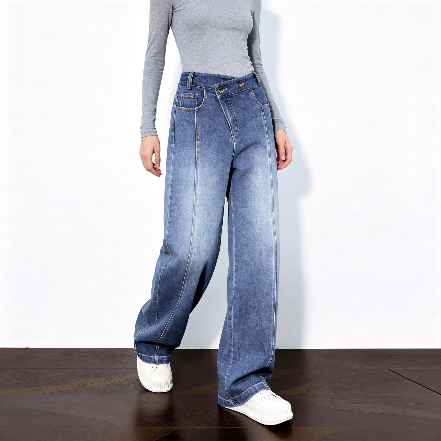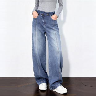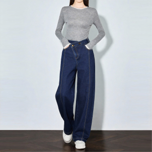 House 高腰显瘦宽松直筒裤 百家好斜腰阔腿牛仔裤 新款 女春季 Basic