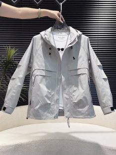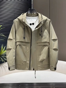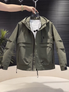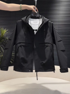 夹克棉衣新款 外套男宽松痞帅冲锋衣简约纯色百搭夹克 户外连帽工装