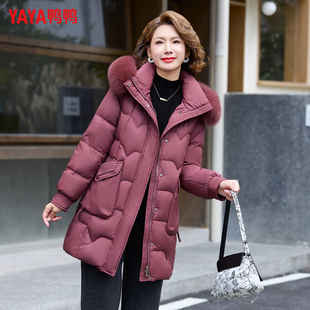 狐狸毛领宽松保暖外套J 中长款 鸭鸭羽绒服中老年女款 2025年妈妈装