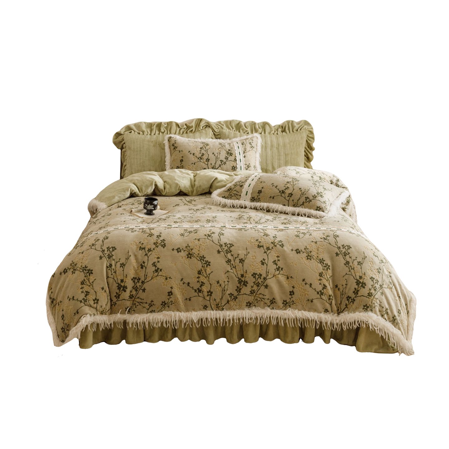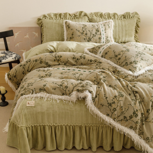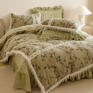 加厚床品 雕花牛奶绒加厚四件套流苏边被套保暖冬季 法式 复古床盖款