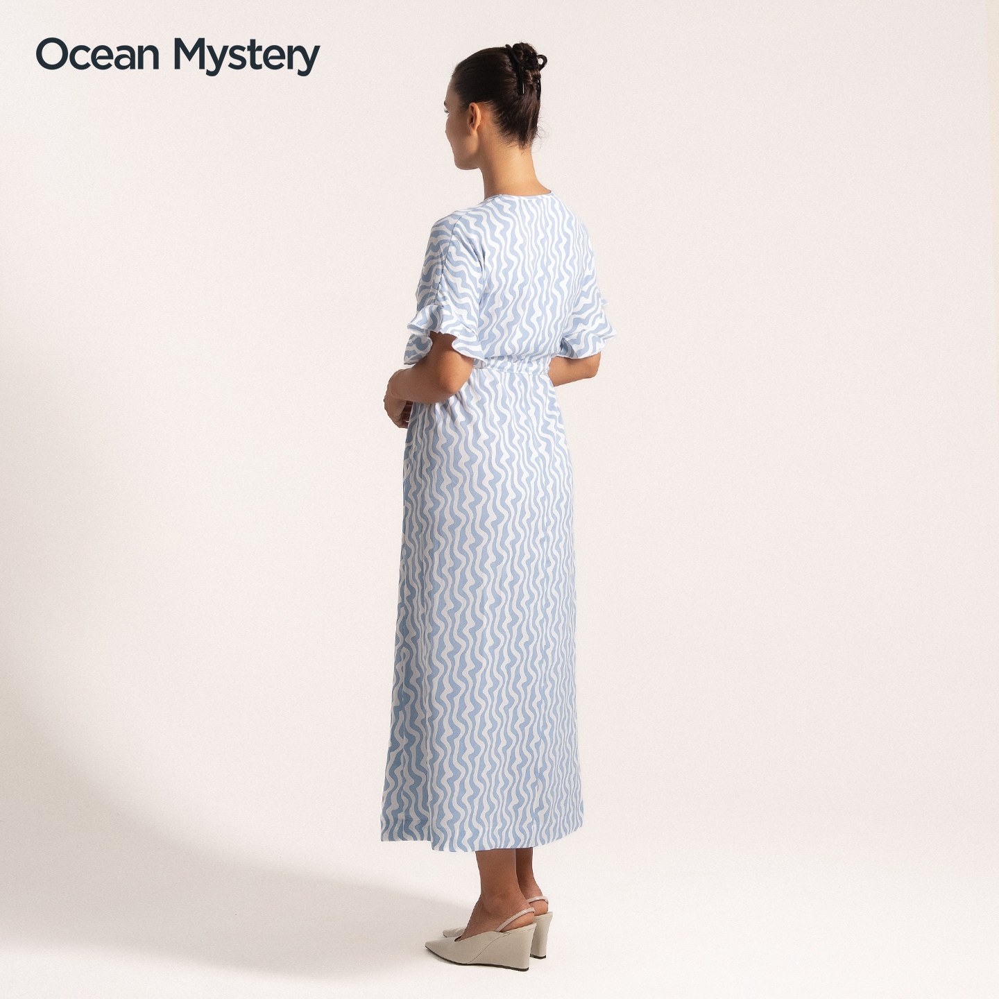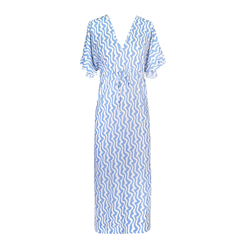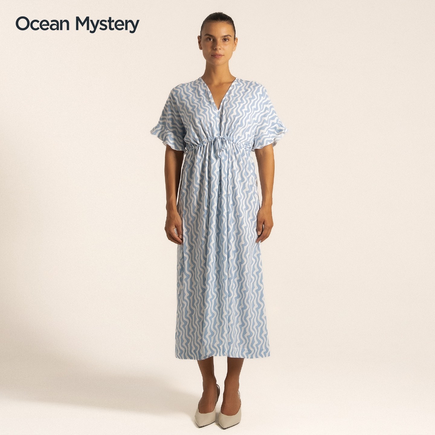 OceanMystery限量女装 蓝白波浪泳衣外搭中长裙女度假穿搭沙滩裙