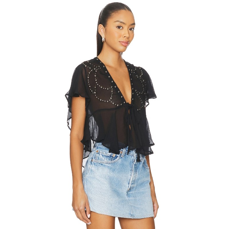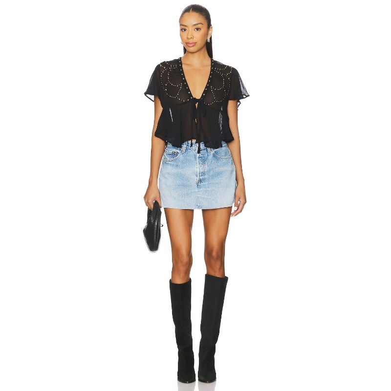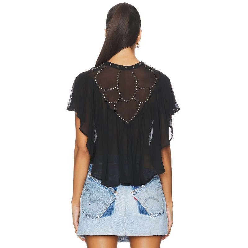 Free People 铆钉上装 内搭 FINE 黑色基础易搭内搭 冬季