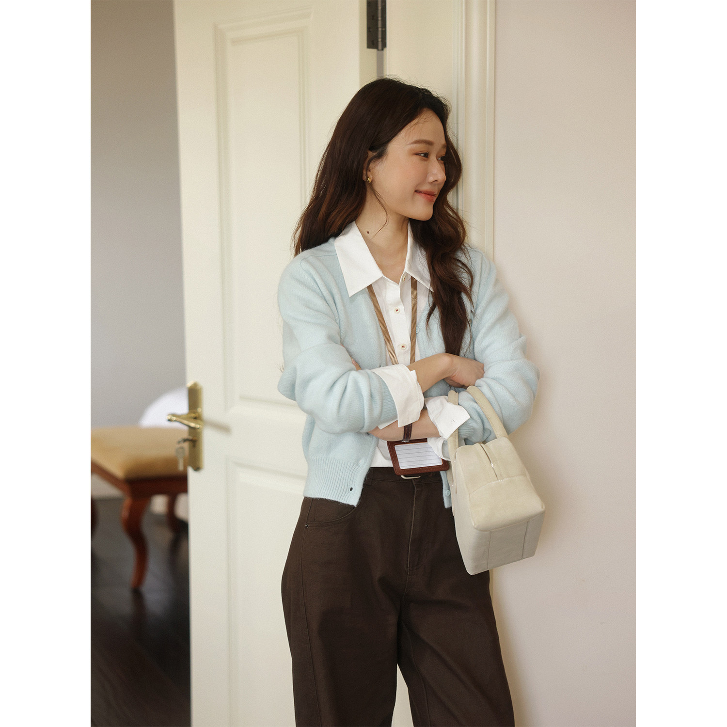宽松软糯百搭开衫 JOCO 女2025秋季 毛衣针织衫 外套 CHIC蓝色v领长袖