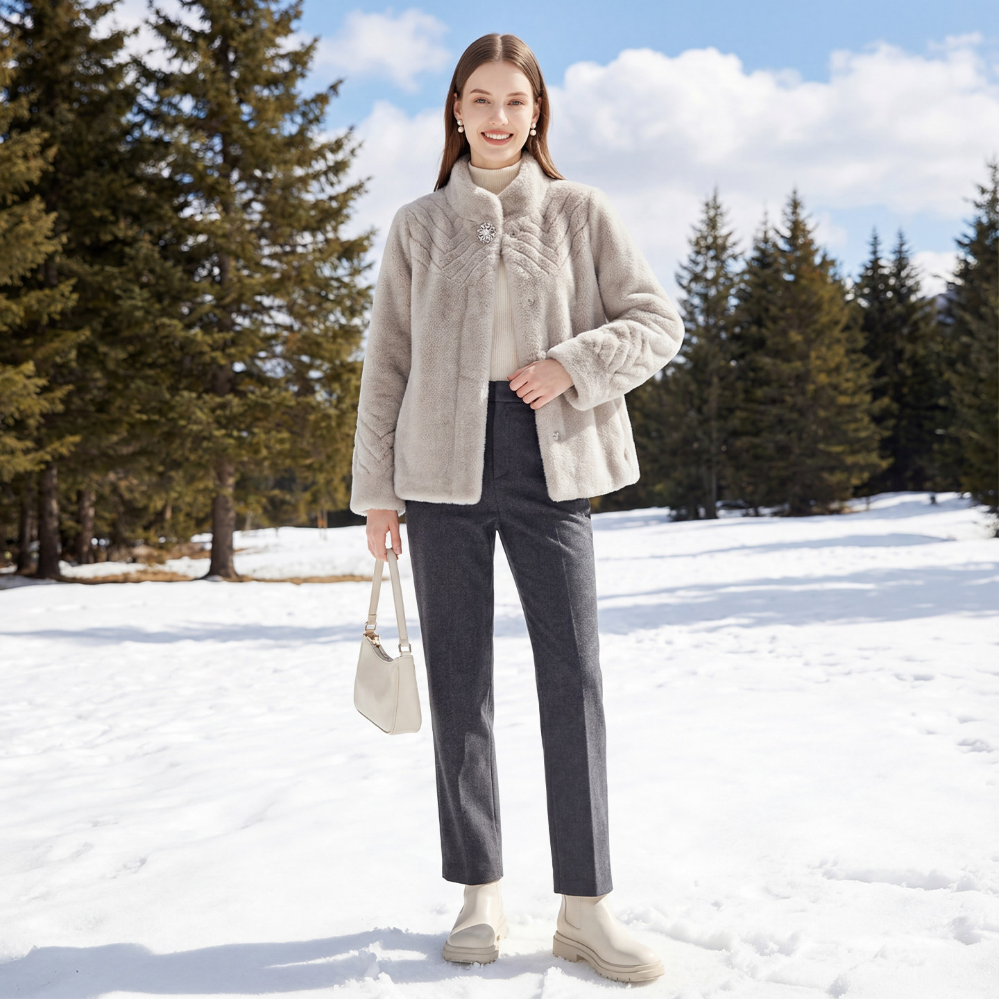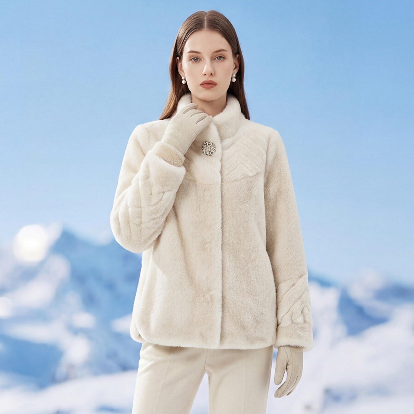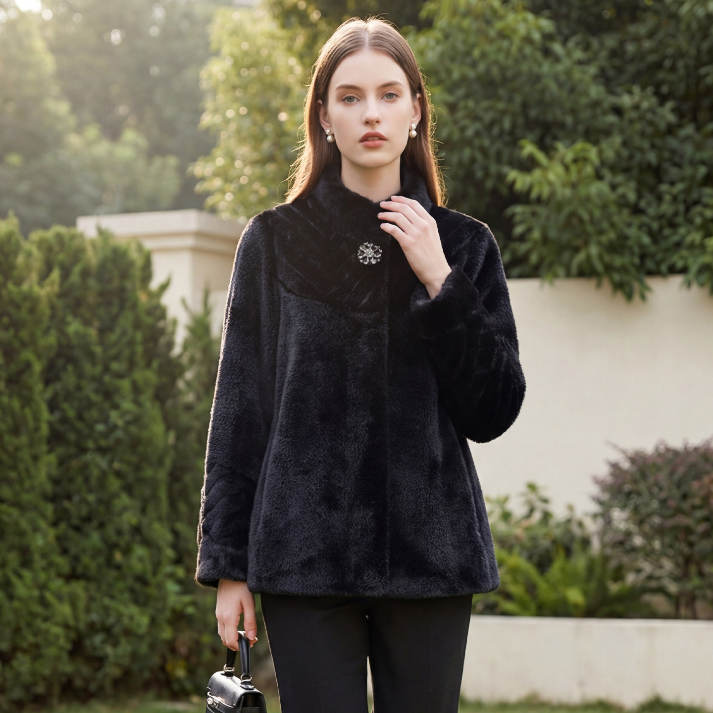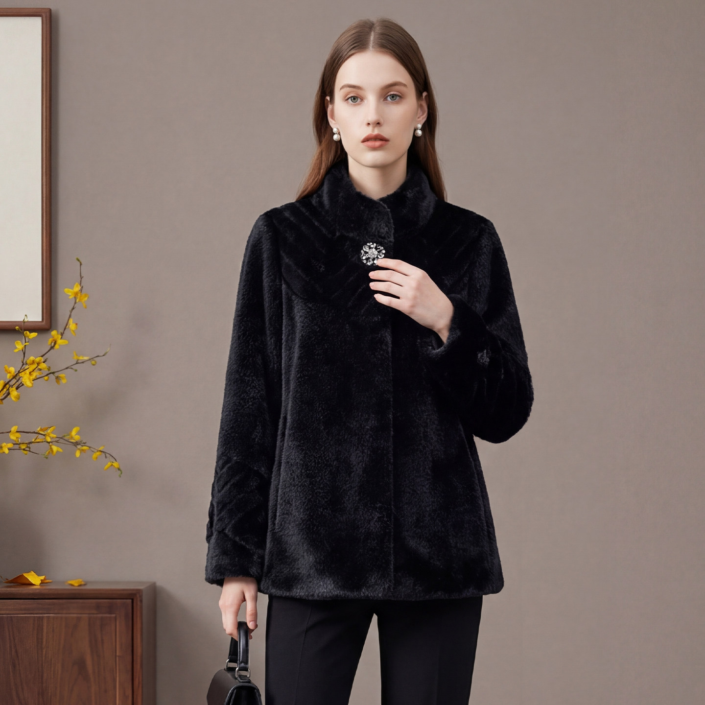 金貂绒外套仿皮草轻奢保暖女装 马天奴女装 钻扣立领短款 新款 冬季
