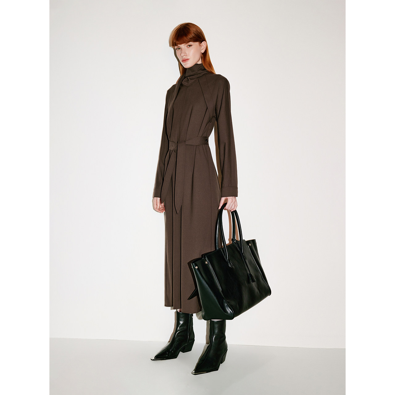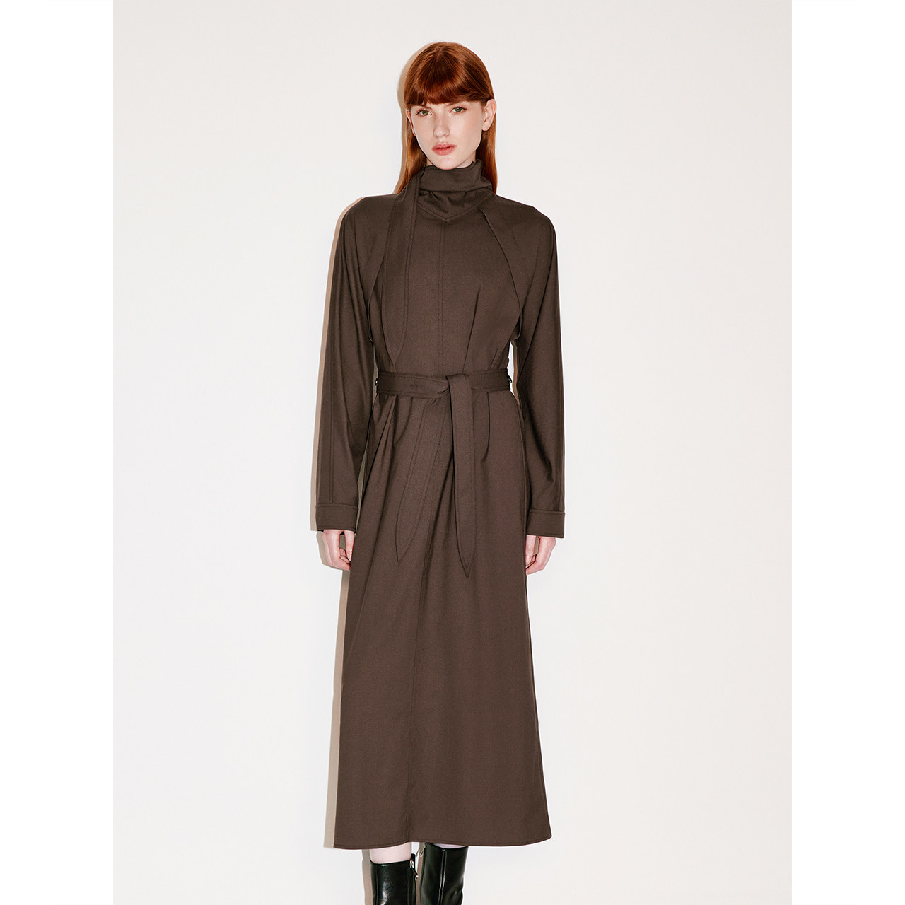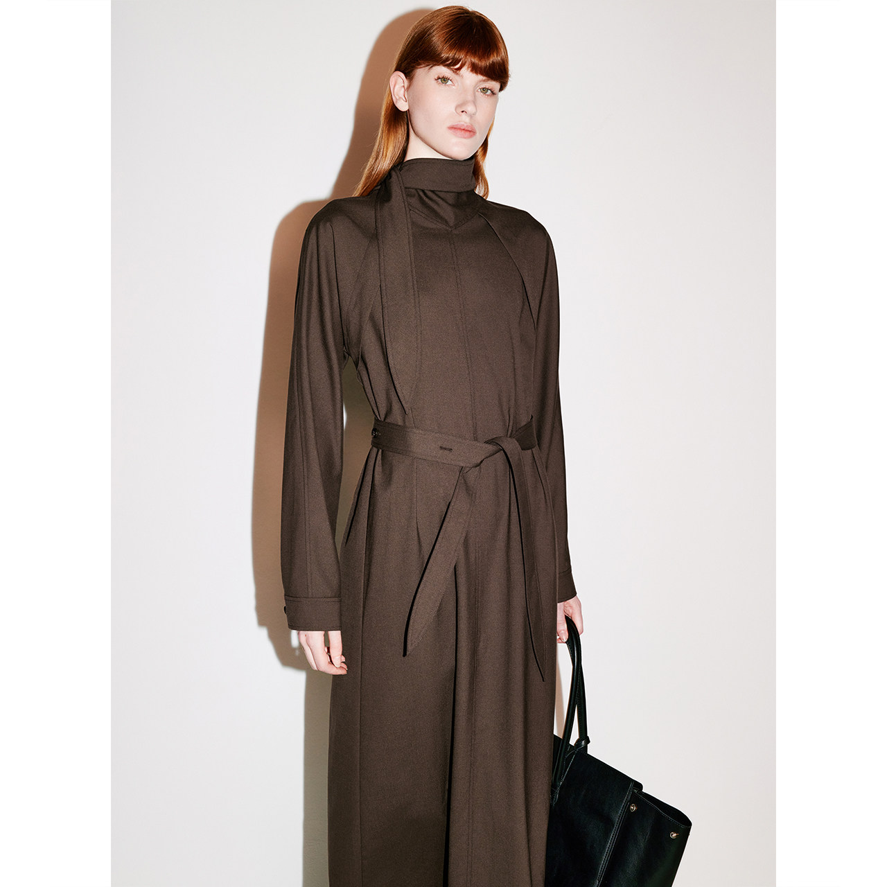 CC35305140 2025秋新品 COVERINS围巾领收腰系带长袖 连衣裙女长款