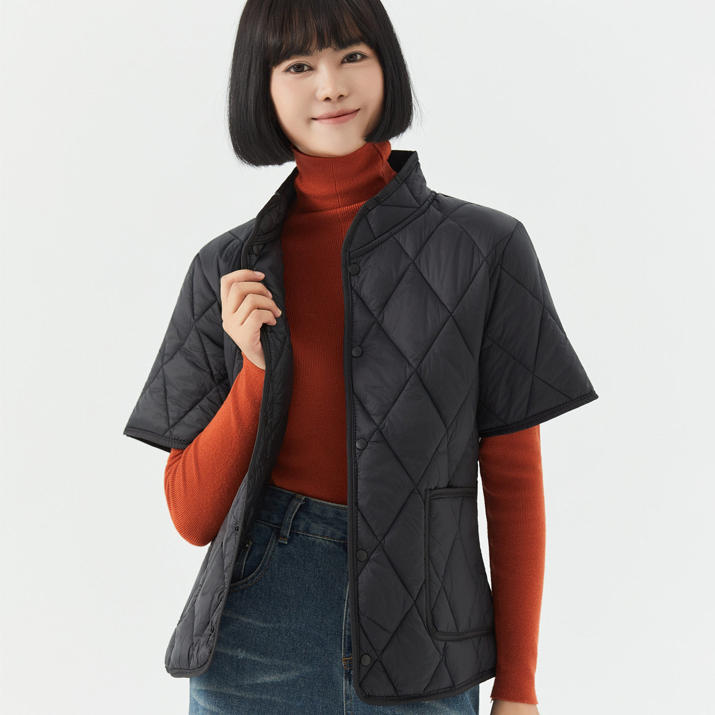 女士棉袄半袖 轻薄修身 保暖内胆棉衣坎肩马甲棉服 羽绒棉短款 秋冬季