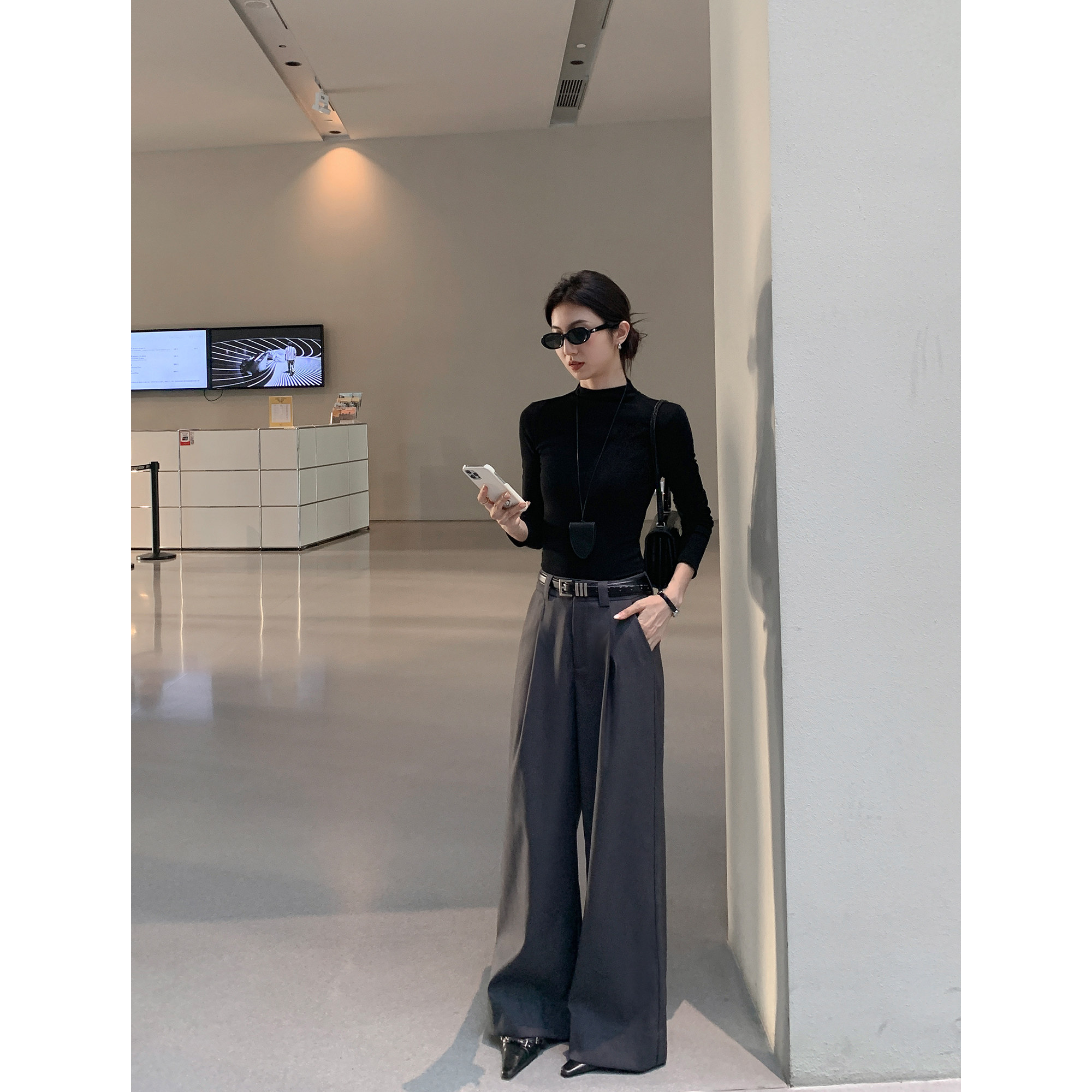 女直筒宽松阔腿垂感拖地长裤 MULVAN 裤 极简黑色高腰西装 老钱vibe