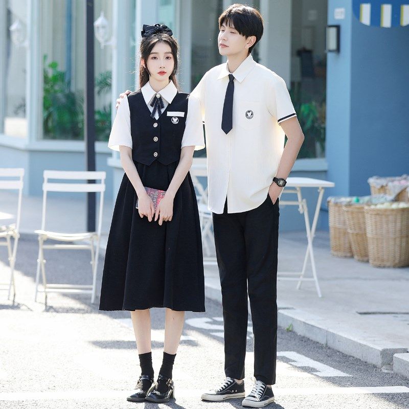 学生班服演出服中学生高中毕业背带裙套装 JK学院风短袖 夏装 情侣装