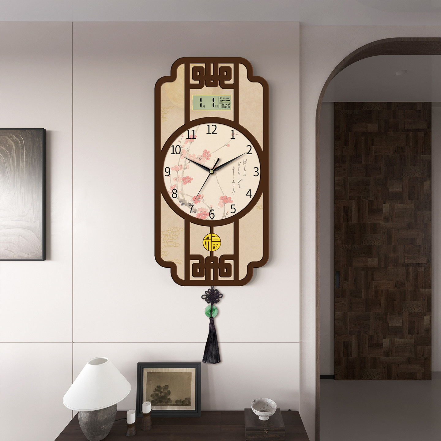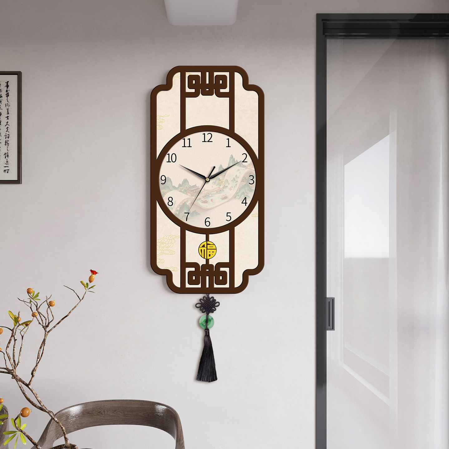 中国风钟表挂钟客厅家用新款 饰画时钟挂墙创意万年历挂表静音钟 装