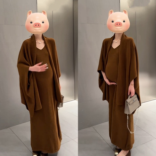 阔腿裤 SUK 舒适羊毛针织上衣连帽开衫 慵懒套装 两件套 焦糖玛奇朵