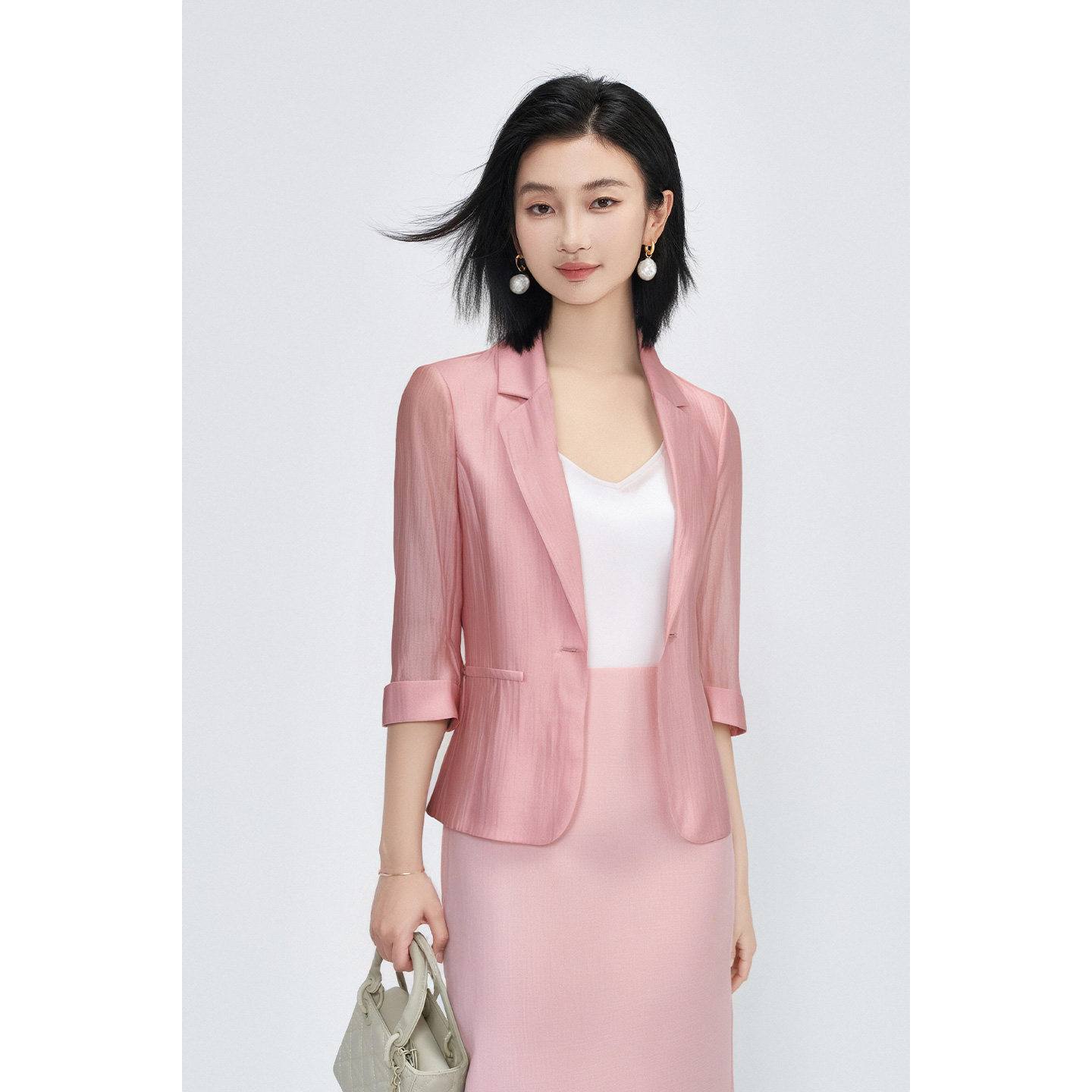 大学生浅色套装 职业女士西服通勤女装 外套女正装 达佳诗白色西装