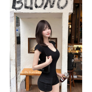 女百搭口袋显腿长高弹休闲裤 ALLIN 韩系纯欲性感高腰紧身包臀短裤