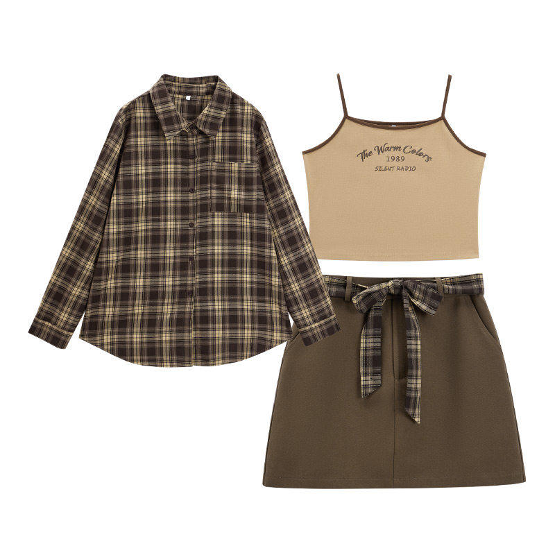 大码 女装 2025秋季 IEF 美式 微胖 新款 休闲风里外三件套裙 爱依服