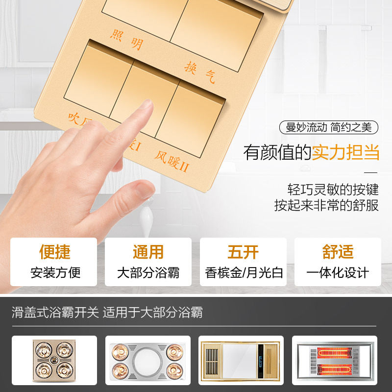 防水五开单控浴霸开关专用通用滑盖浴室卫生间风暖5合一四开面板