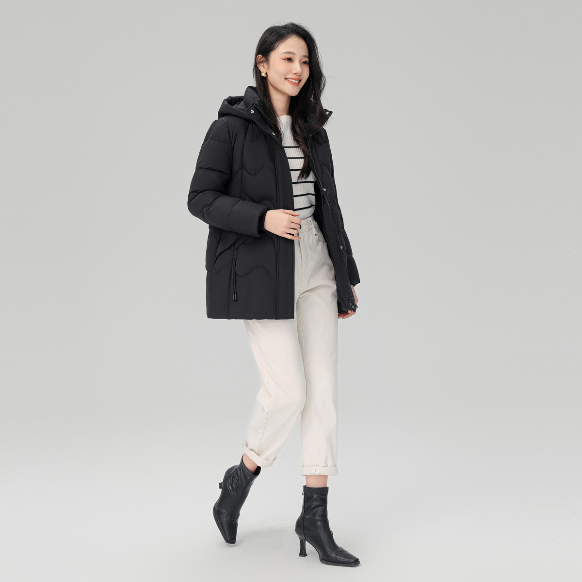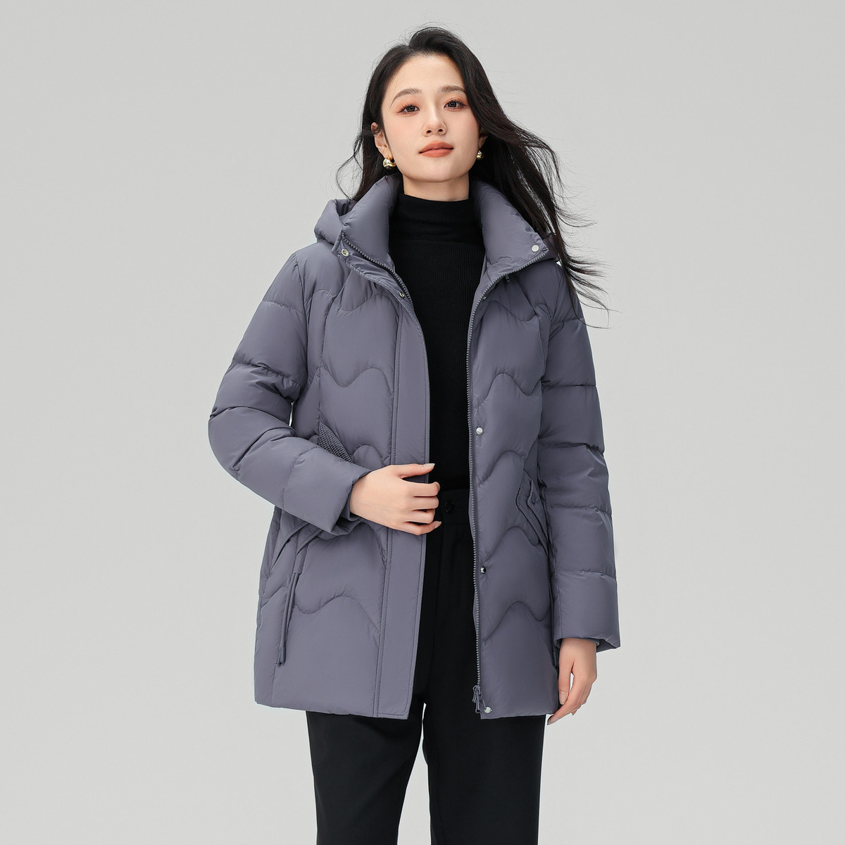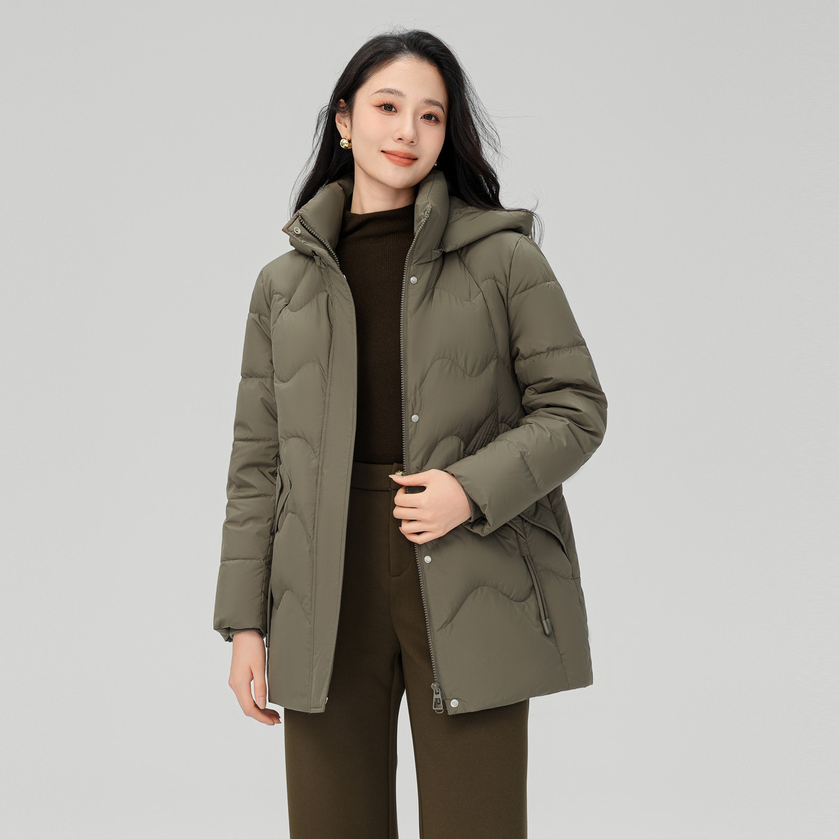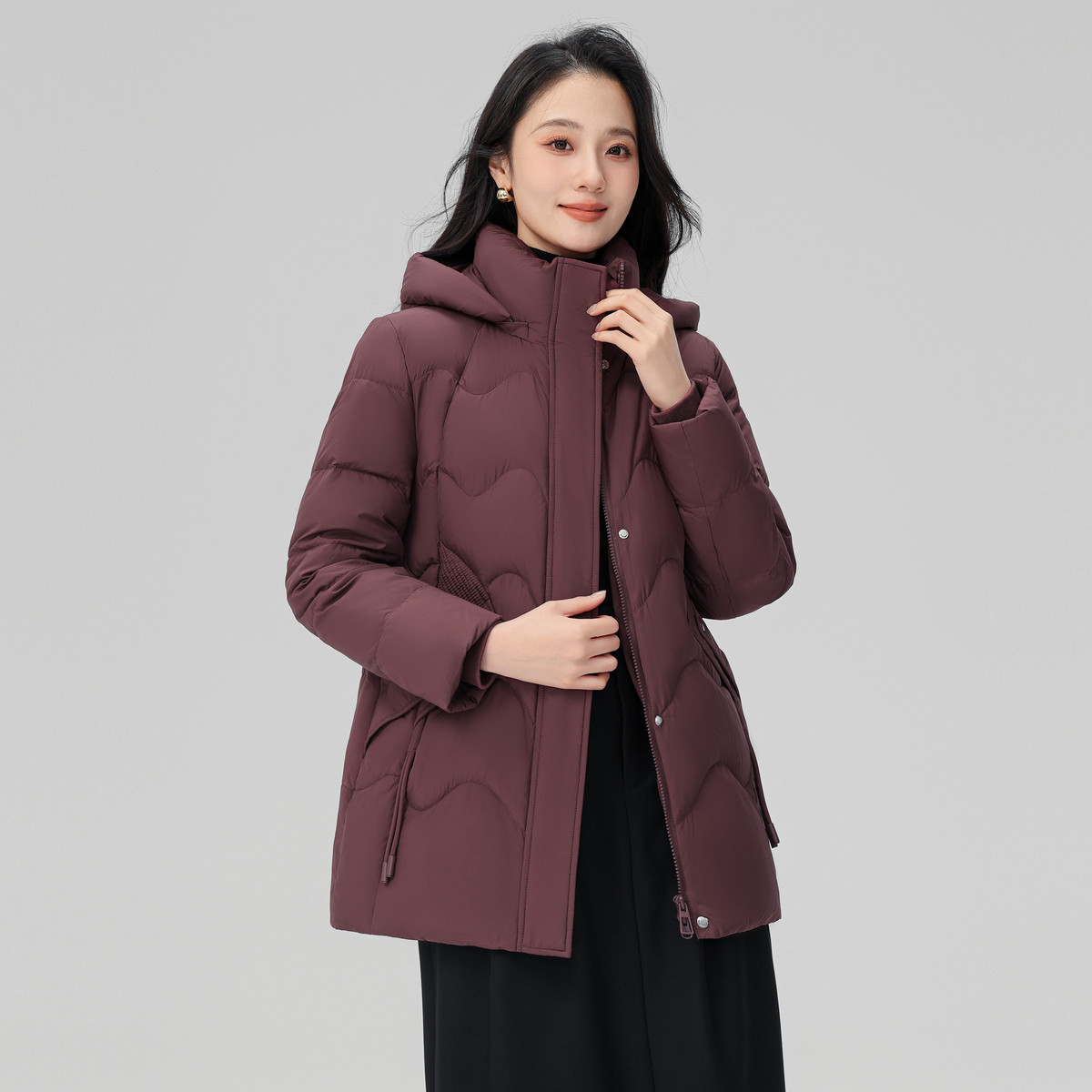 雪中飞2025冬新款 女中老年妈妈端庄典雅连帽保暖微收腰 羽绒服短款