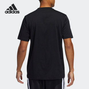 Adidas 阿迪达斯米切尔黑男子舒适休闲跑步透气圆领运动T恤HA7055