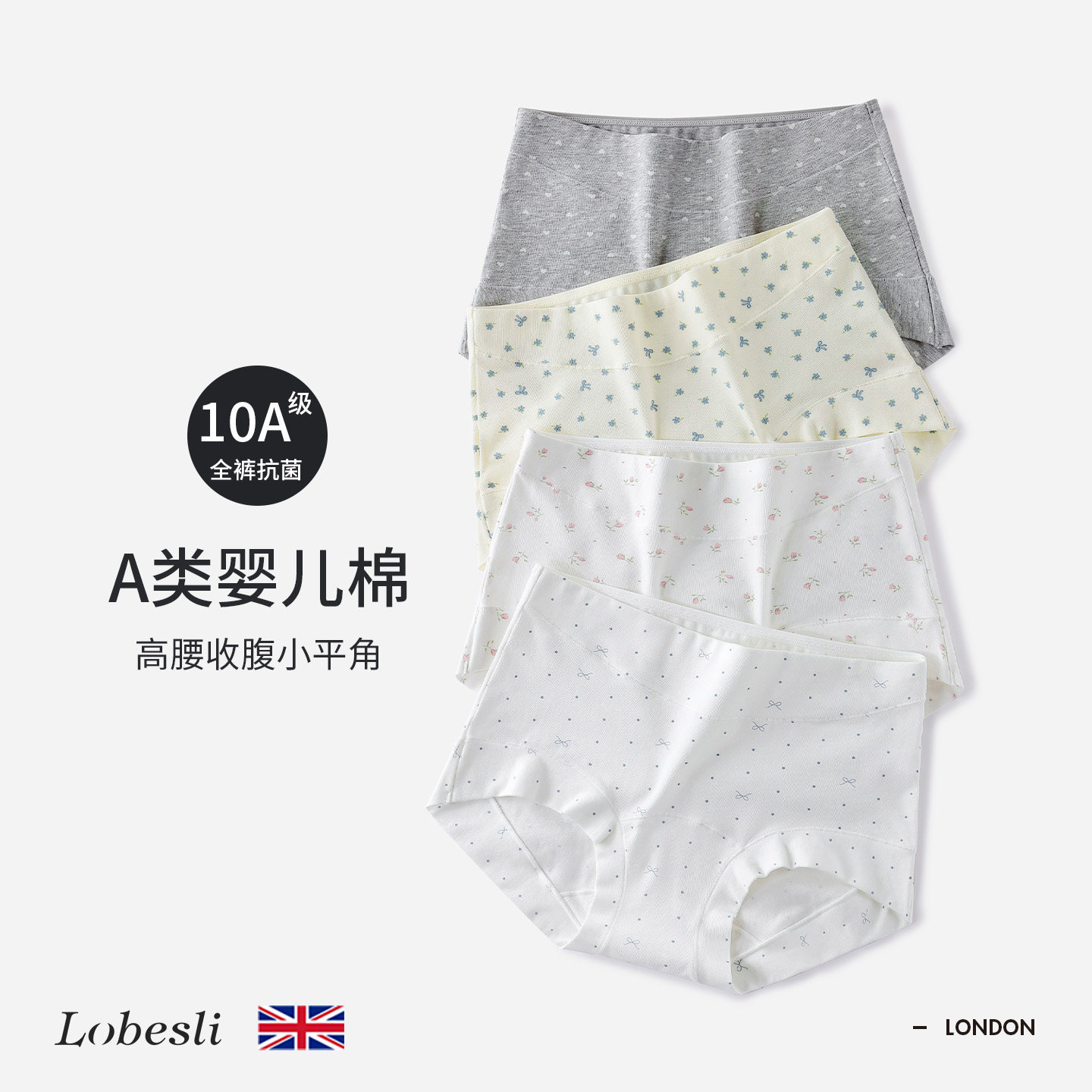 四角裤 大码 女士a类纯棉抗菌高腰收腹平角三角短裤 英国lobesli内裤
