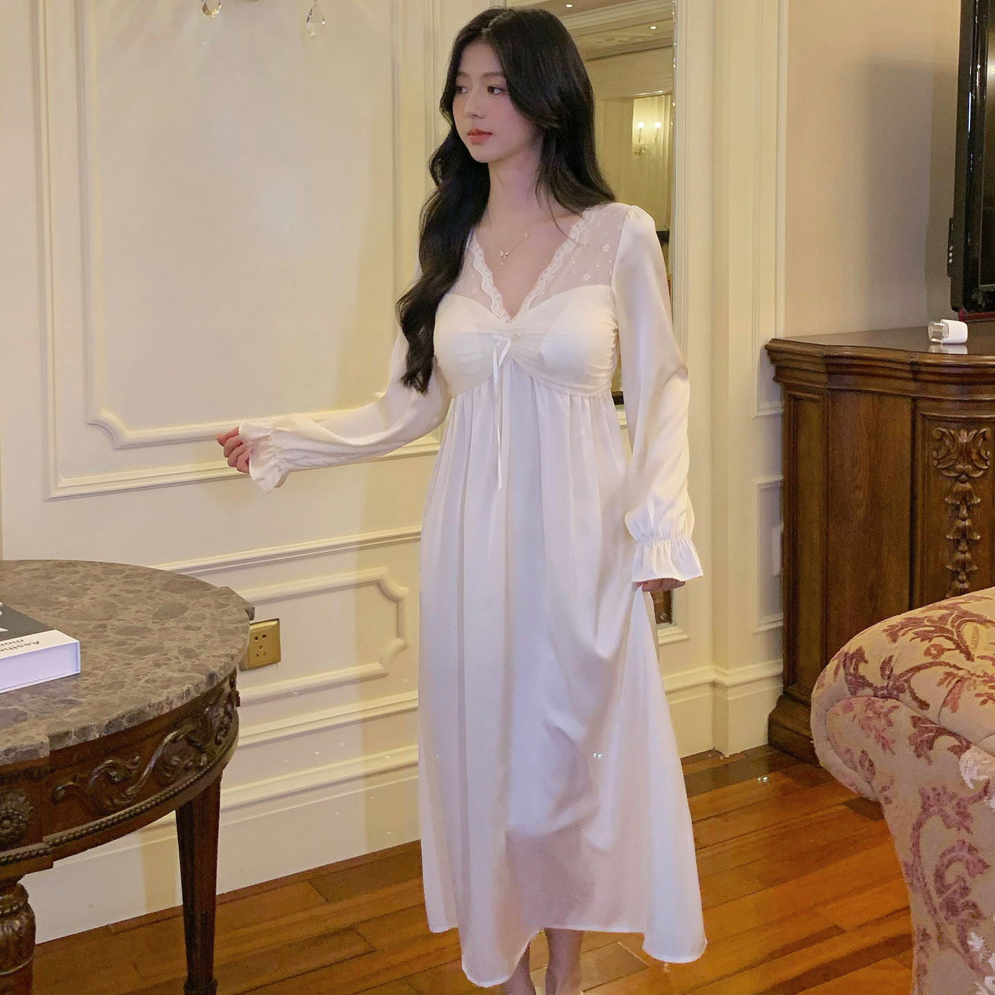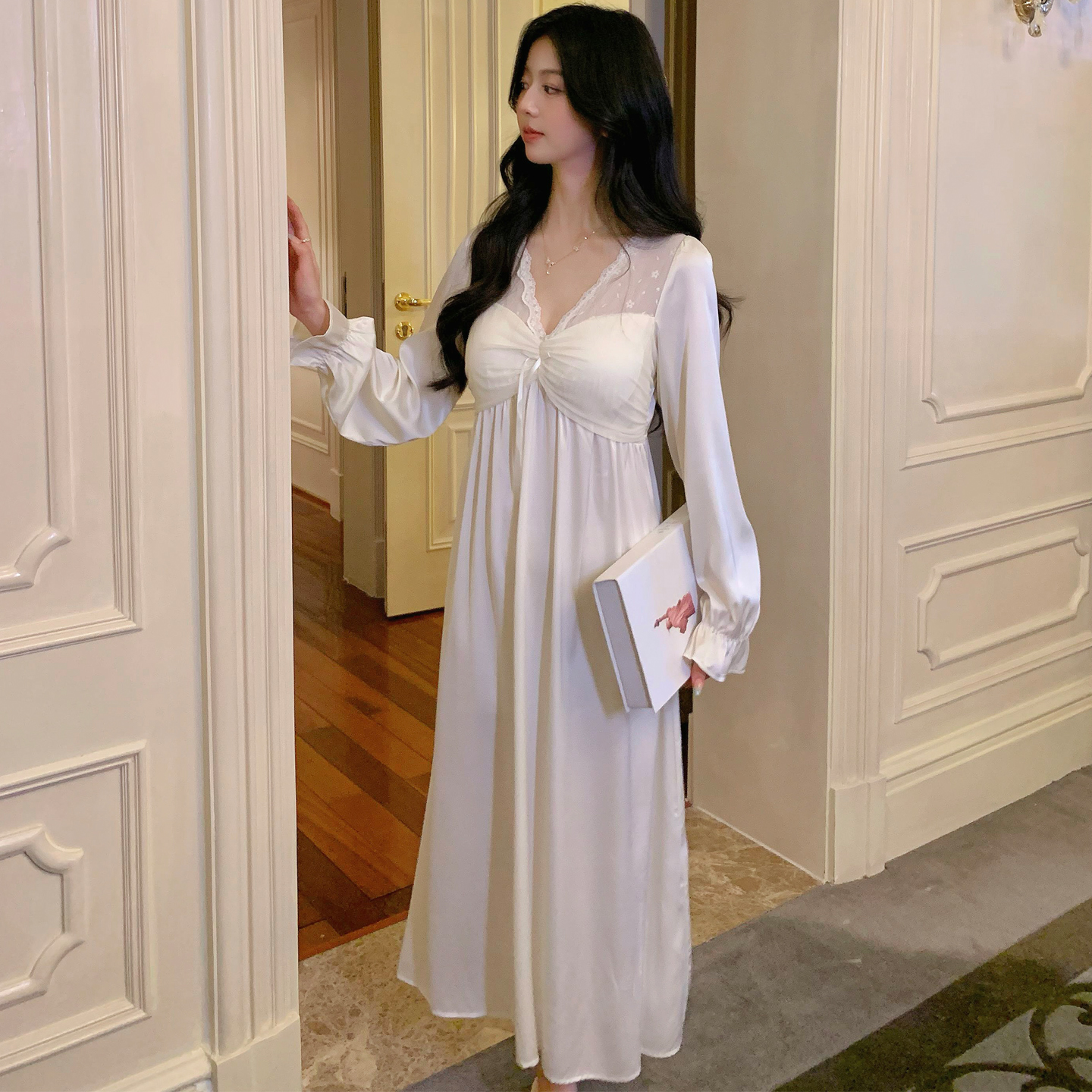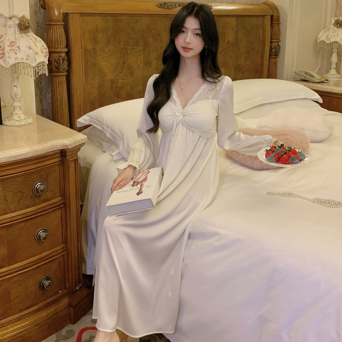 可外穿连衣裙家居服 2025年新款 猫人女士纯棉睡裙带胸垫长袖 春秋款