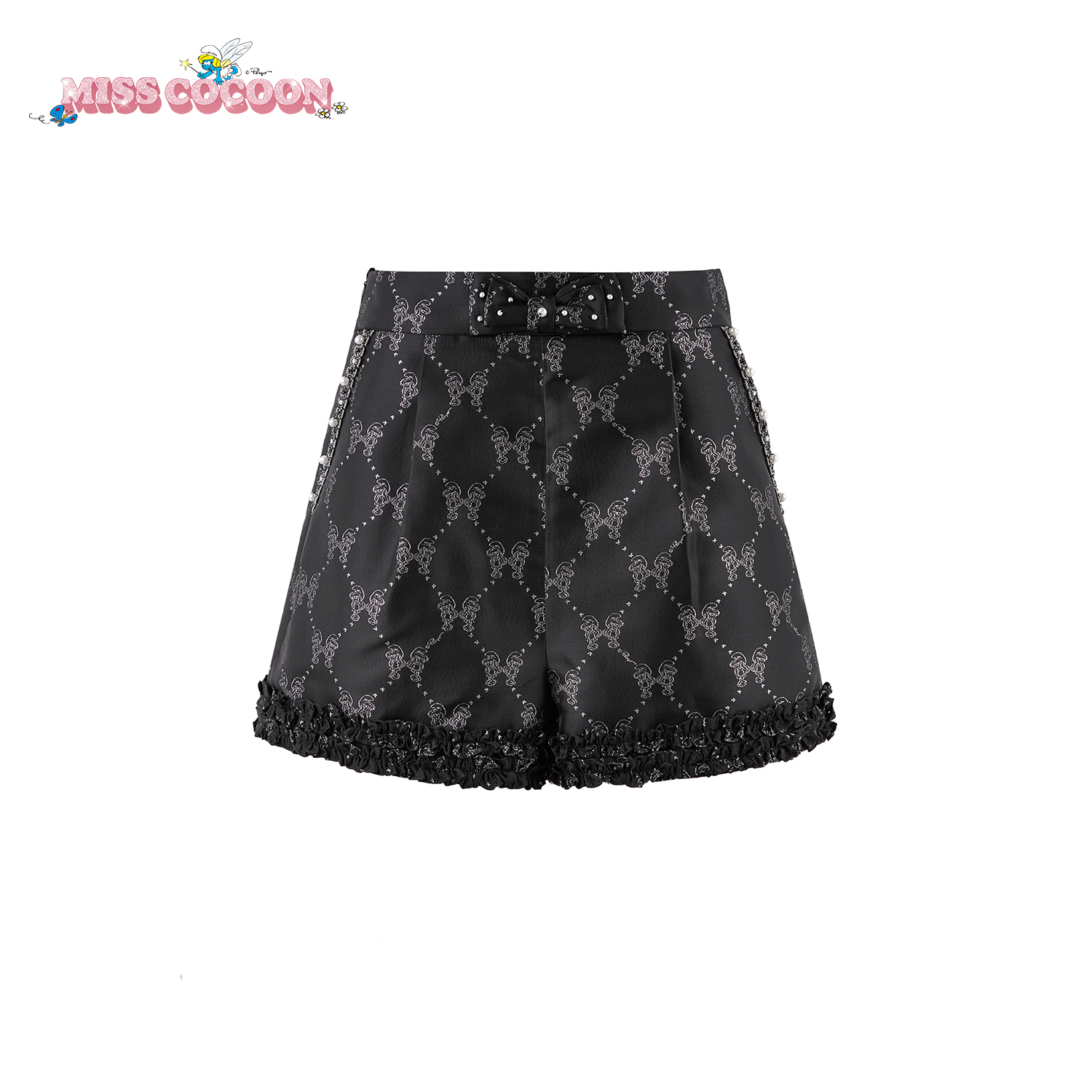 子休闲裤 黑色高腰裤 女2025冬新款 MISSCOCOON可可尼蓝精灵联名短裤