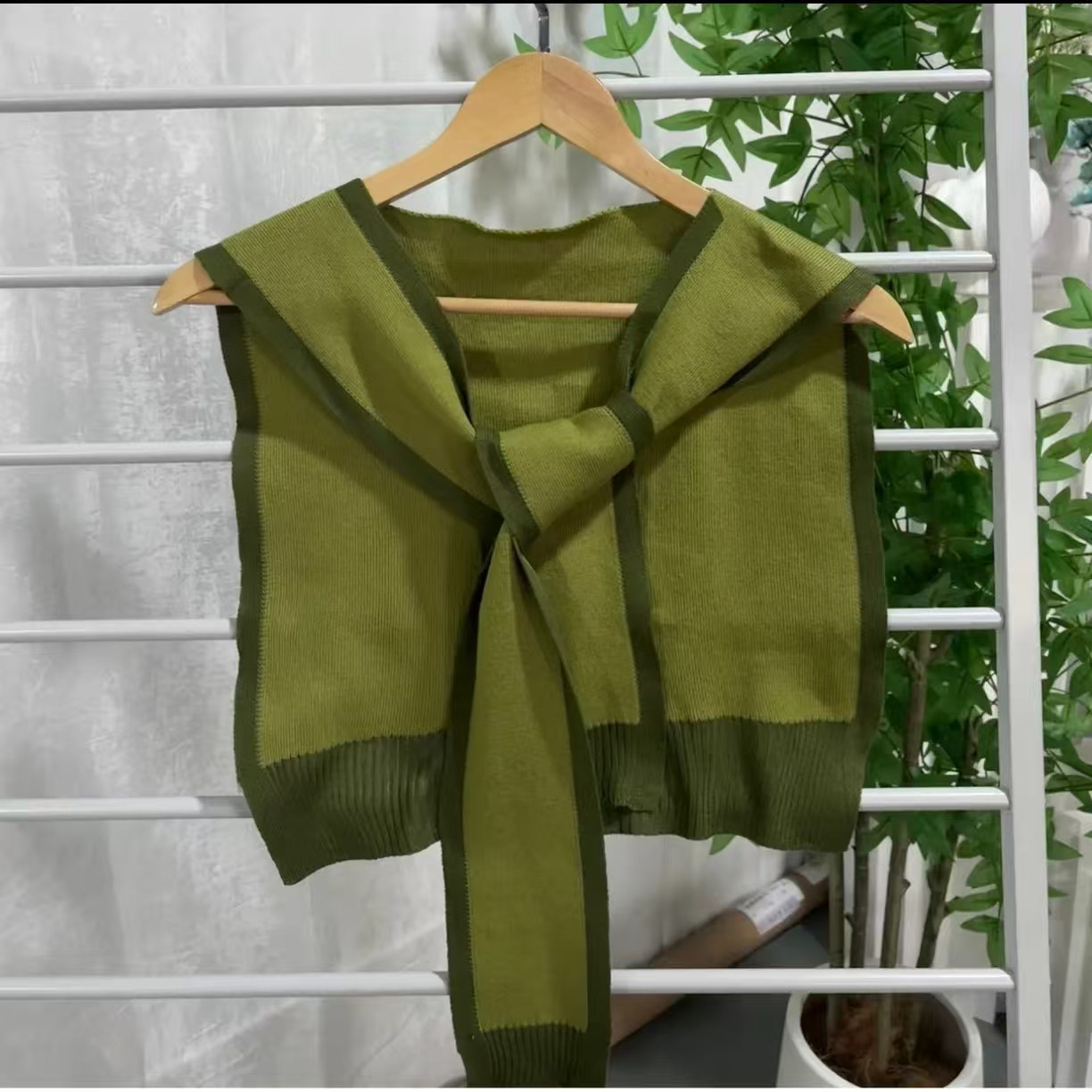 针织披肩女外搭2025新款 春夏薄纯色条纹空调房护颈小坎肩网红衬衫