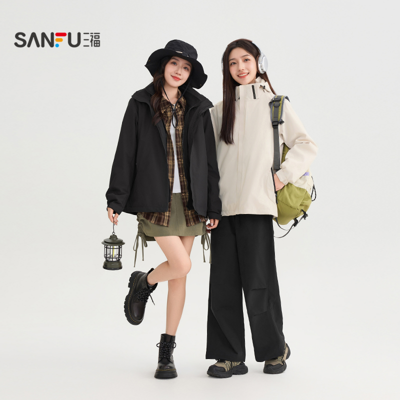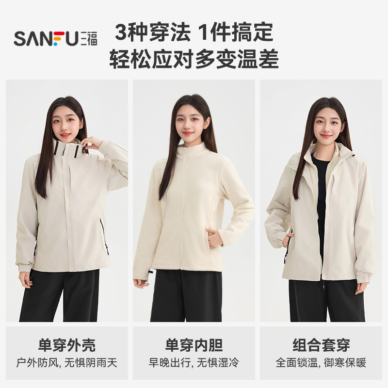 可拆卸连帽摇粒绒内胆保暖三合一上衣504325 三福厚外套2025冬季
