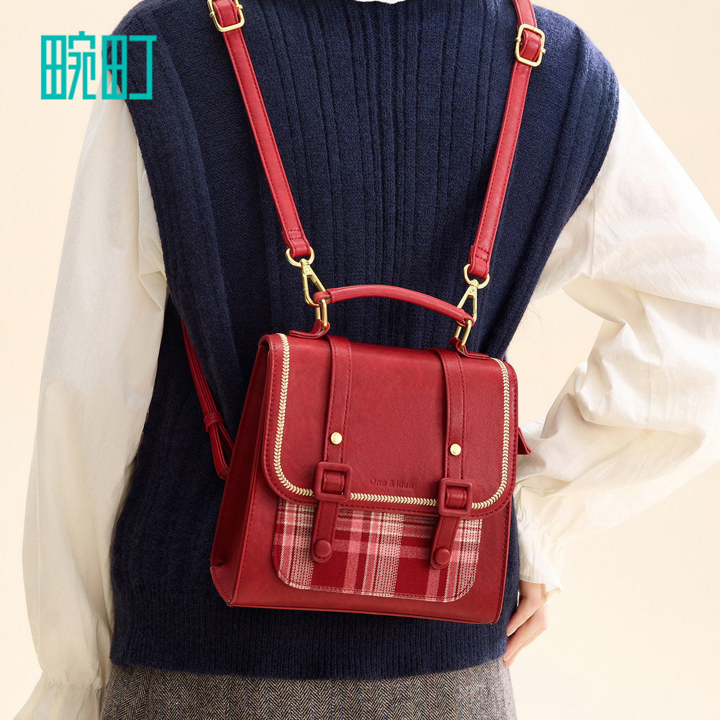 畹町复古学院剑桥包女春日格纹复古英伦风斜挎包休闲百搭通勤小包
