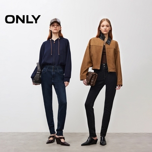 女冬小个子高腰加绒加厚直筒裤 百家好黑色九分牛仔裤 House Basic