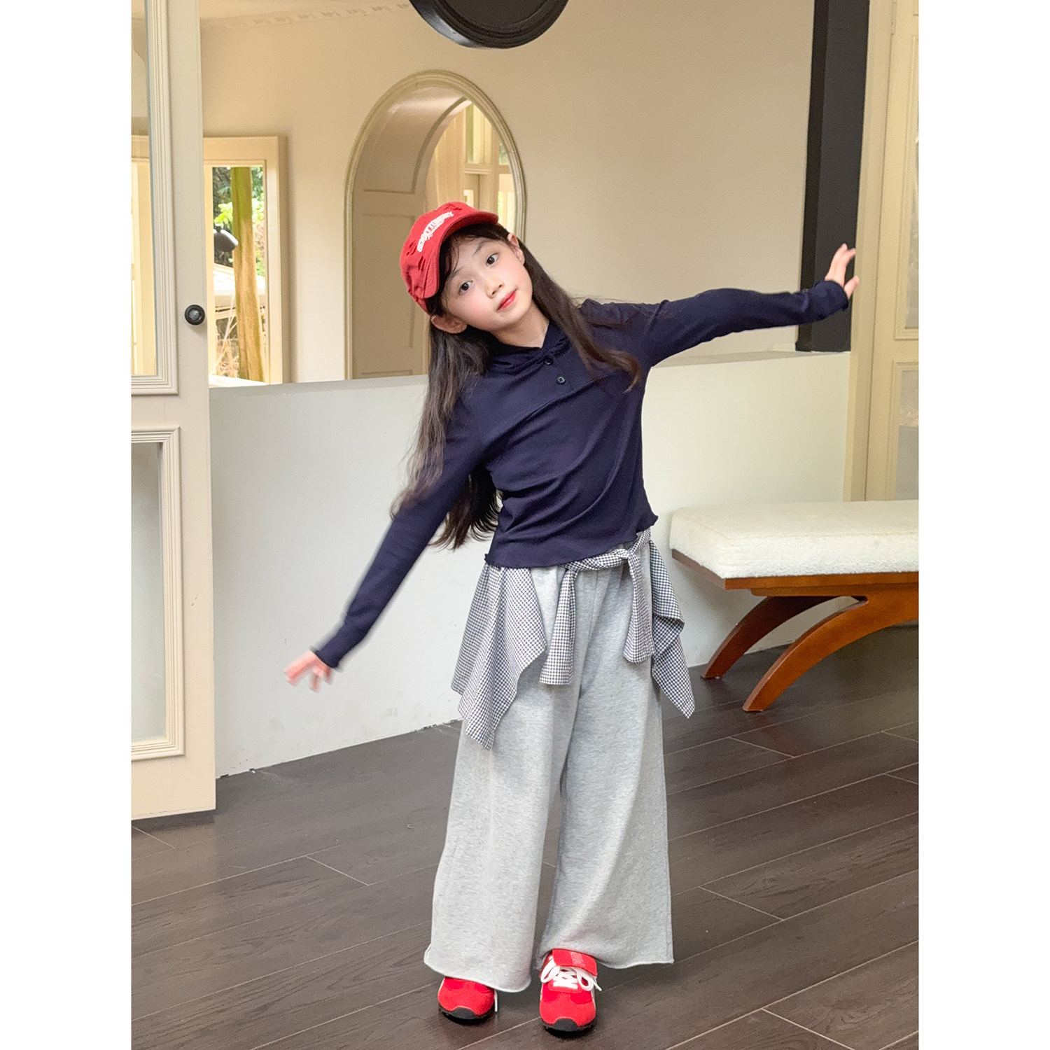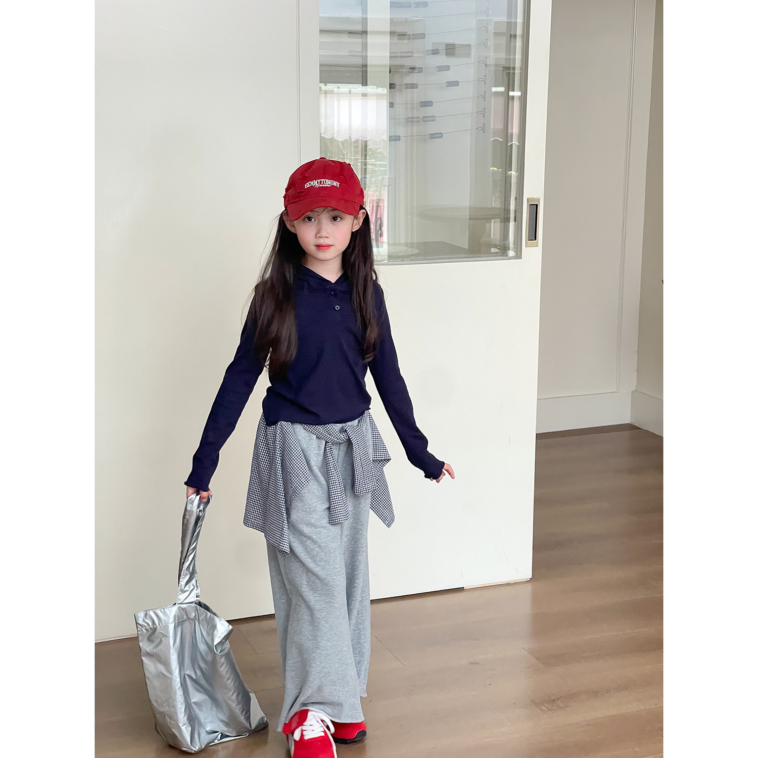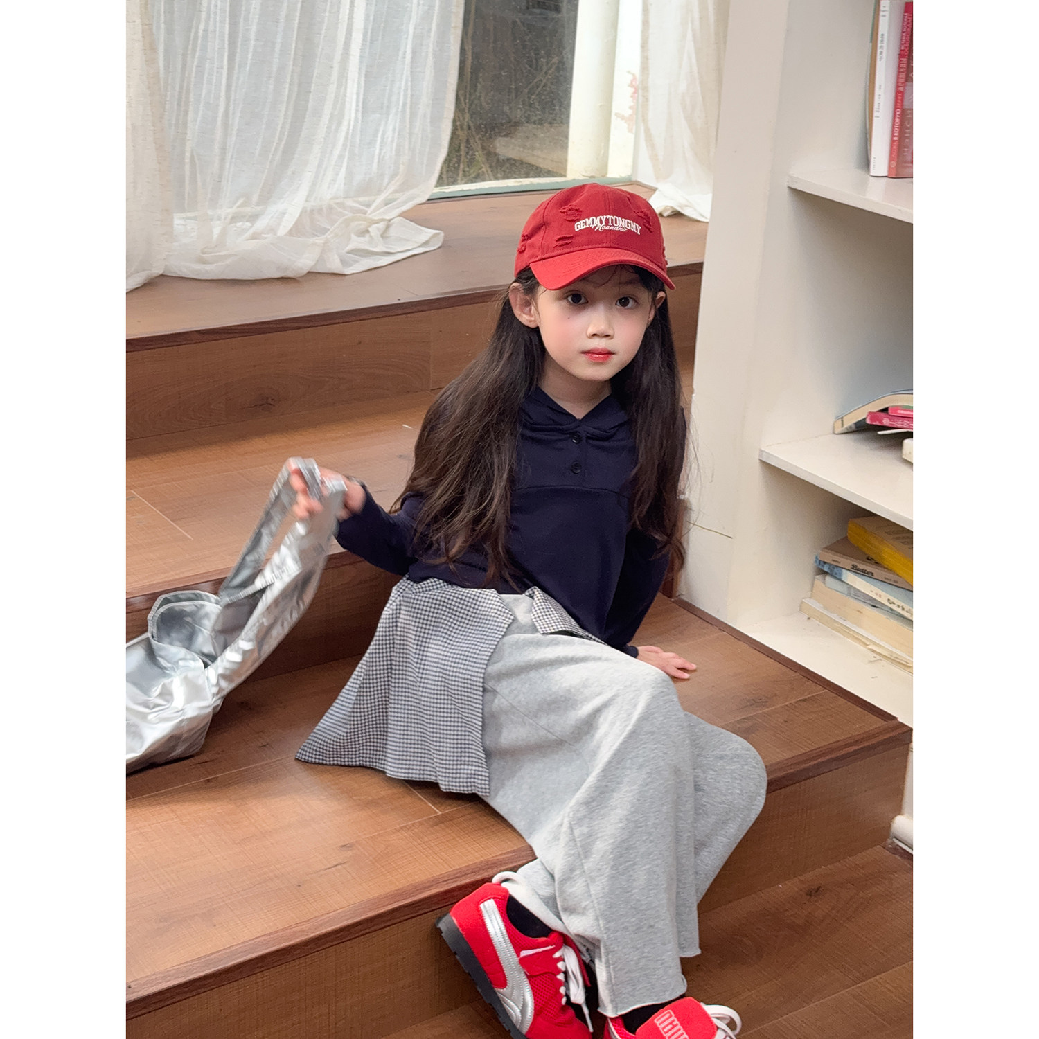CHILD 格子系带休闲卫裤 女童秋季 卷边直筒裤 洋气时尚 NONO