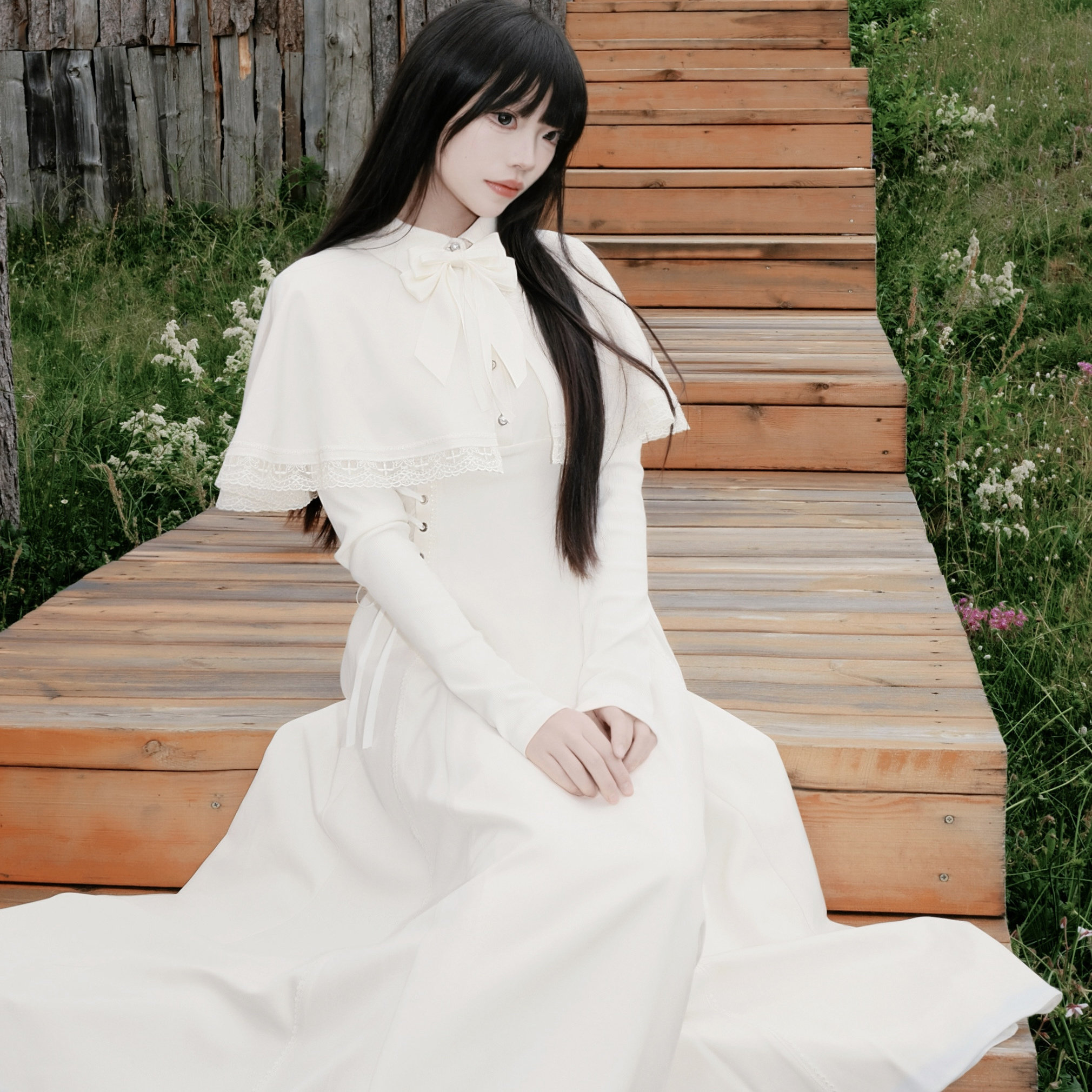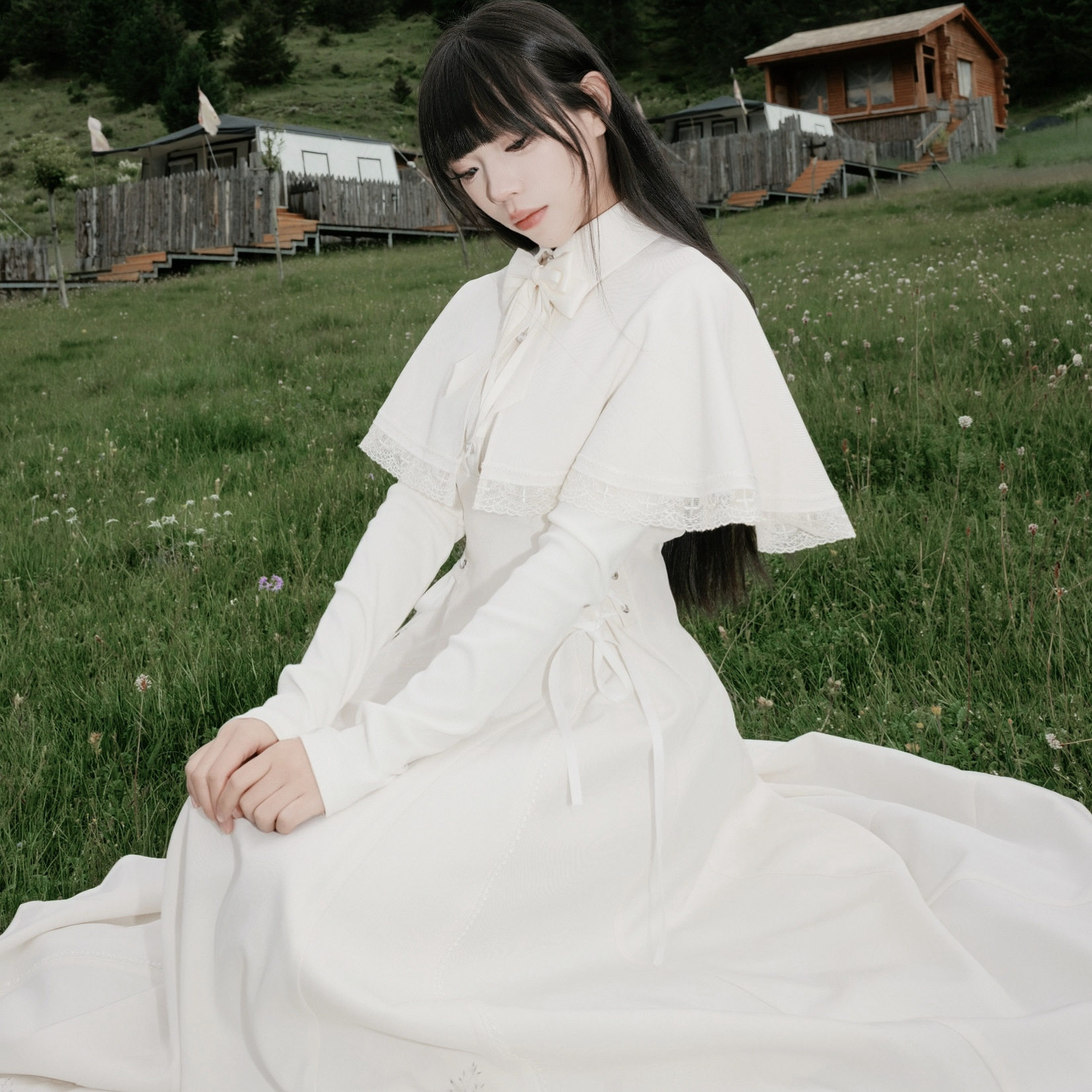 斗篷复古秋冬气质收腰蕾丝连衣长裙 原创设计法式 muggle studio