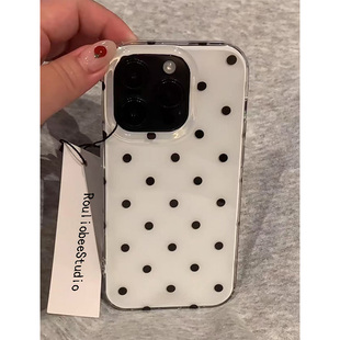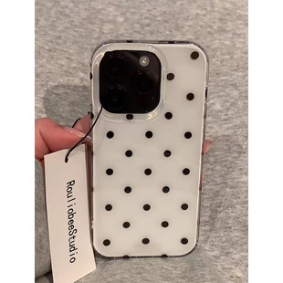 韩系ins白色波点适用iPhone16pro手机壳13苹果15promax可爱12小众高级华为p70新款 vivo小米14红米k80荣耀oppo