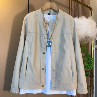 欧货时尚 胖妹妹2025秋季 女装 大码 复古立领休闲显瘦皮衣外套潮 新款