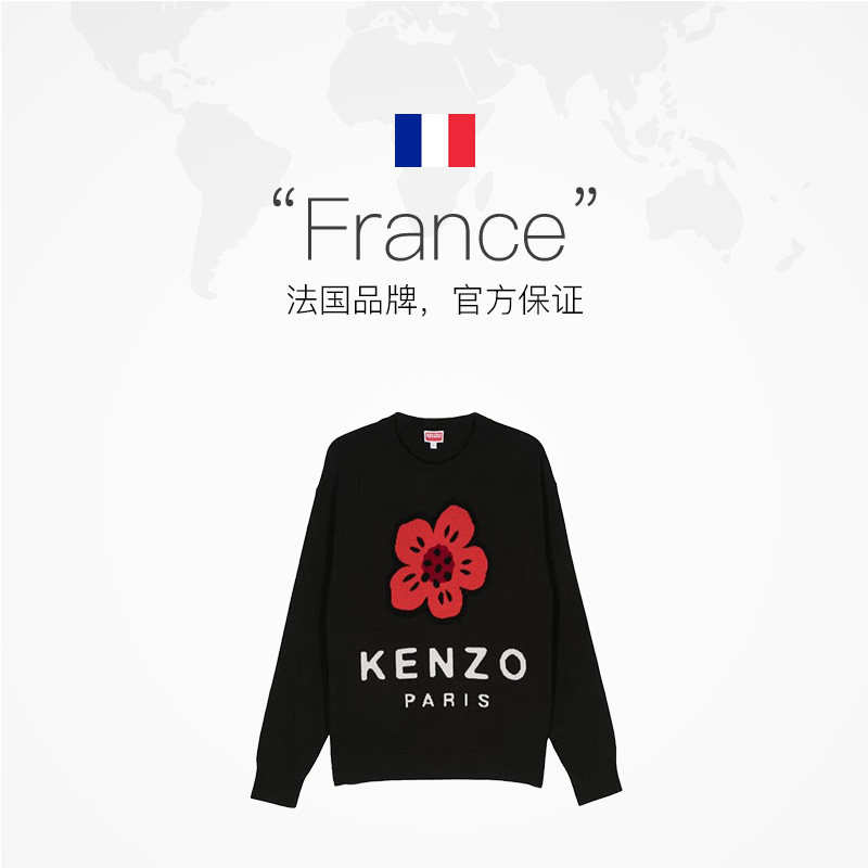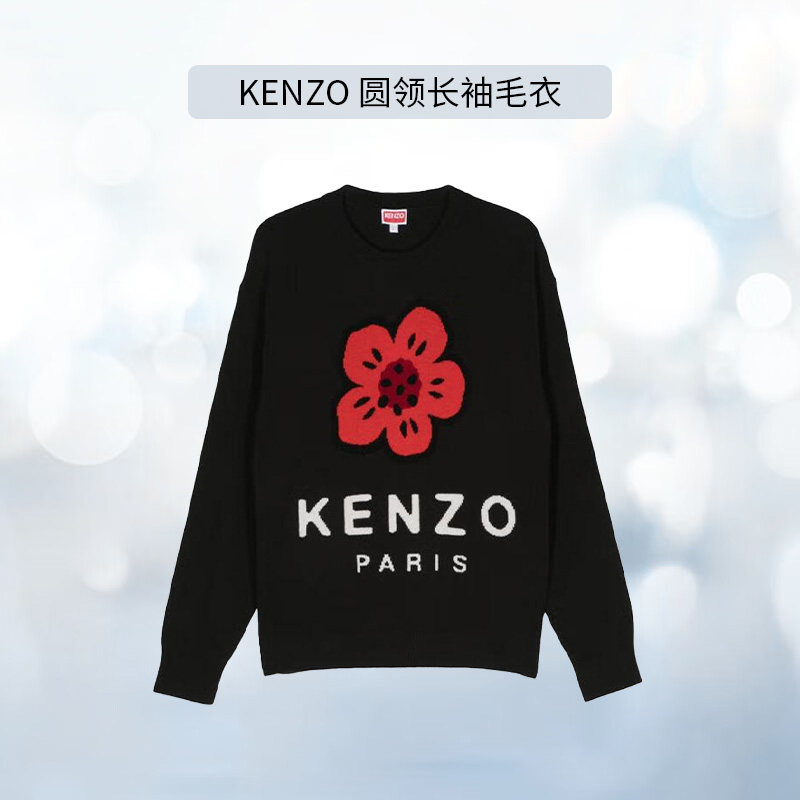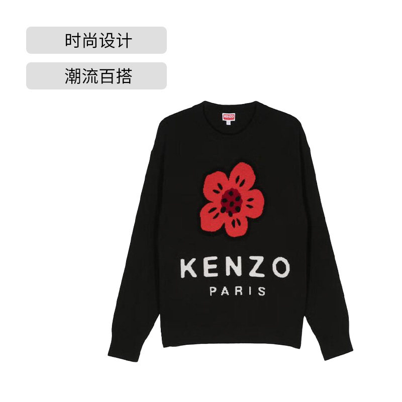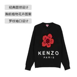 海棠花圆领黑色长袖 凯卓针织毛衣经典 KENZO 上衣休闲百搭 自营