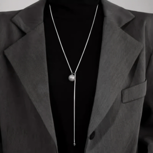 银色简约项链女高级感小众气质毛衣链百搭装 日常锁骨链配饰 饰新款