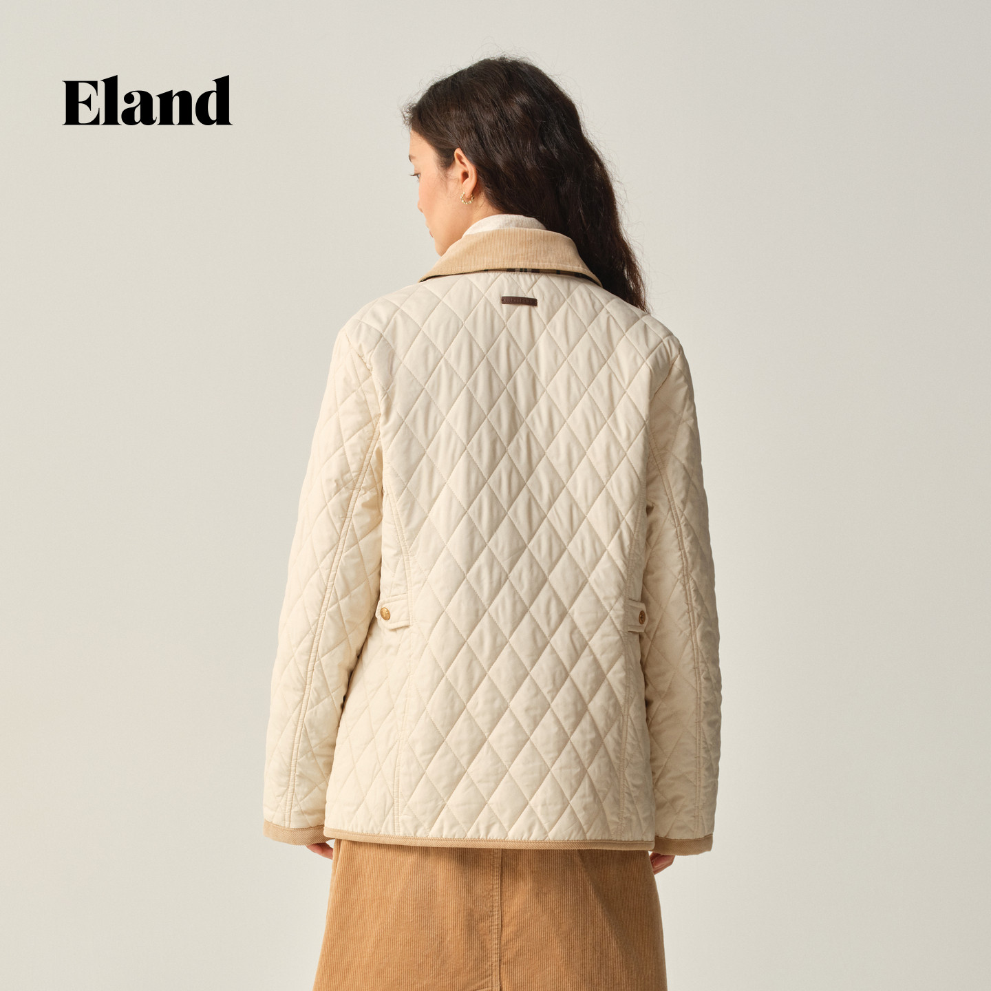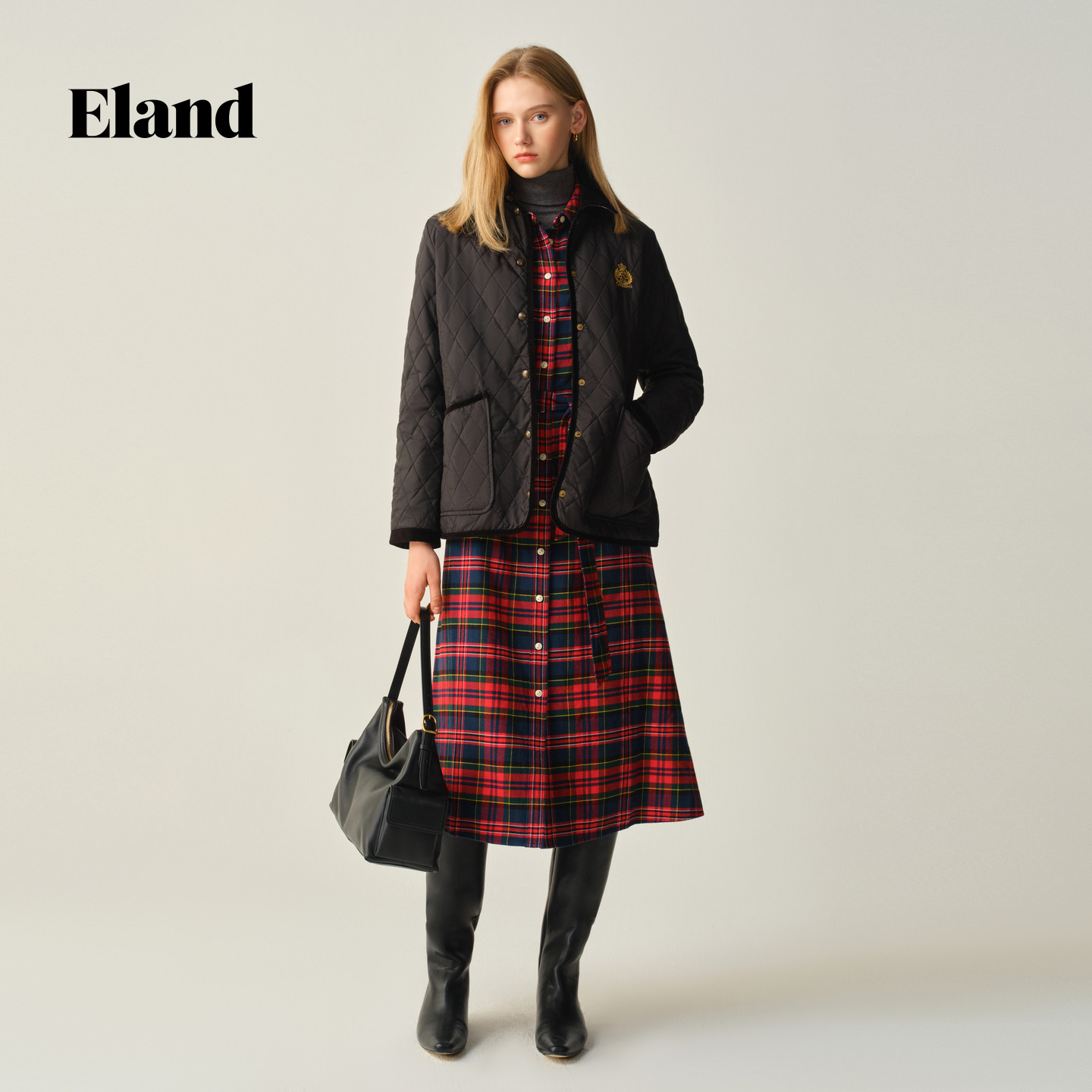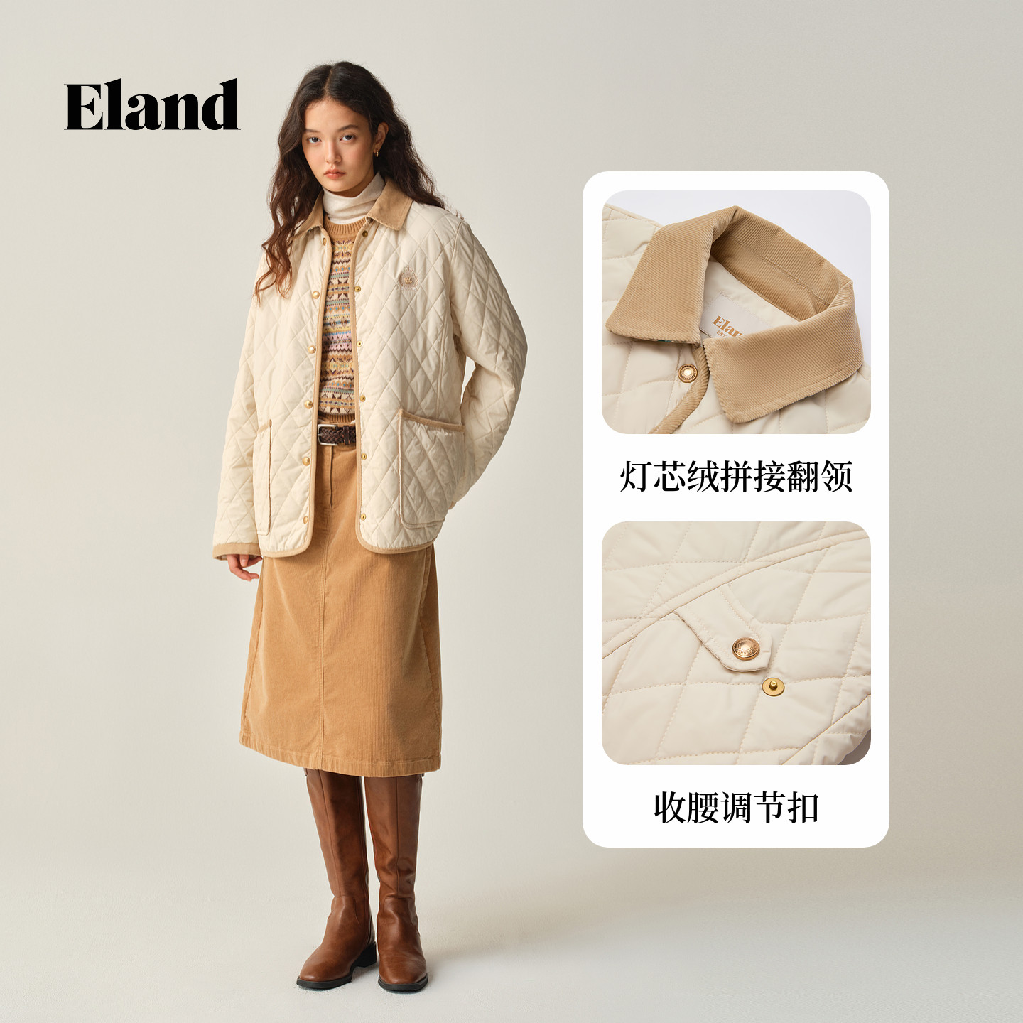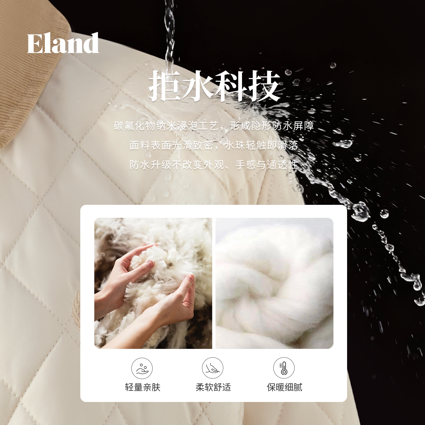 ELand衣恋棉服女菱格中长款 含绵羊毛 冬新款 拒水科技