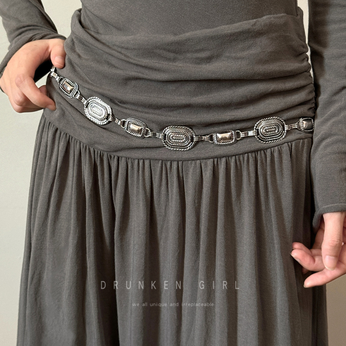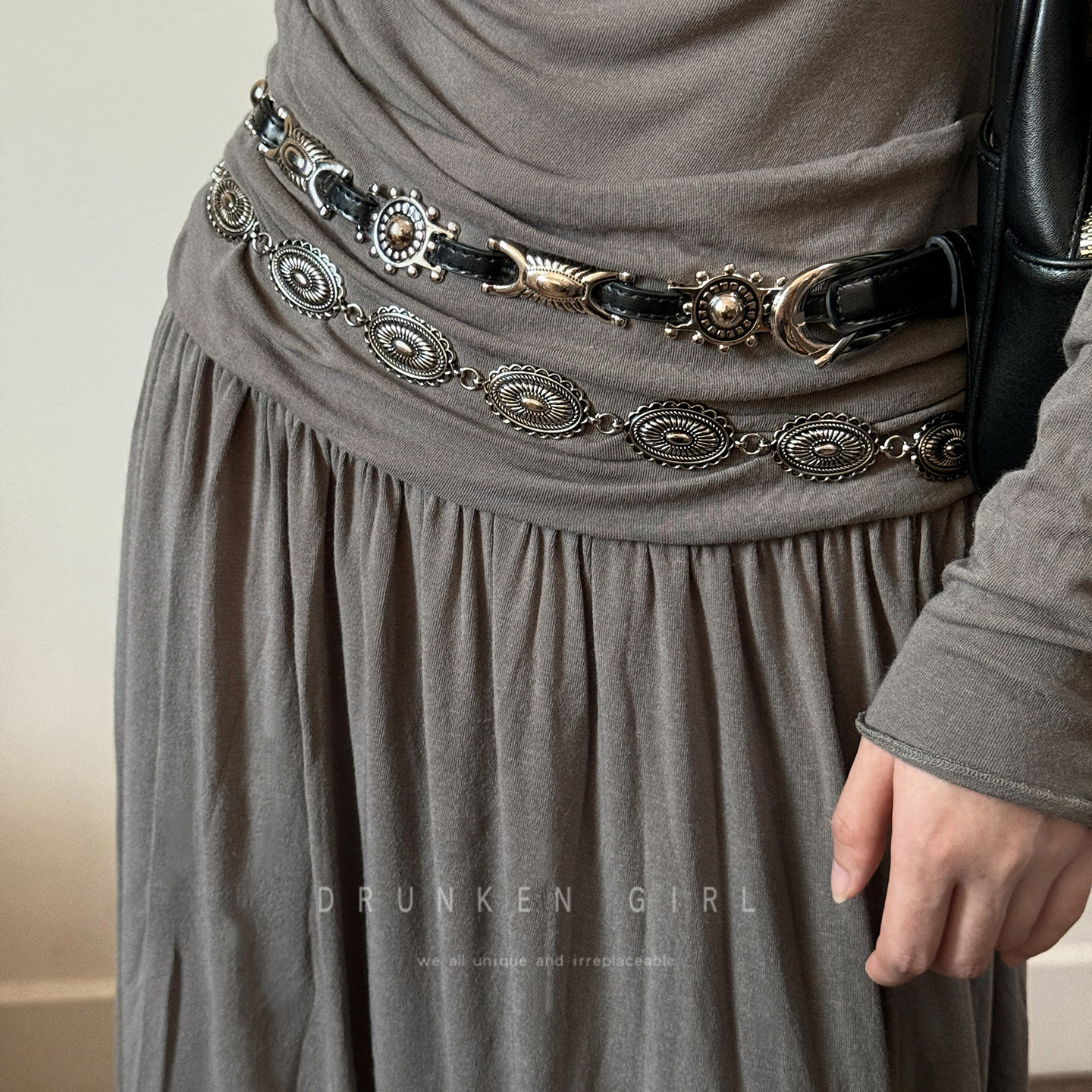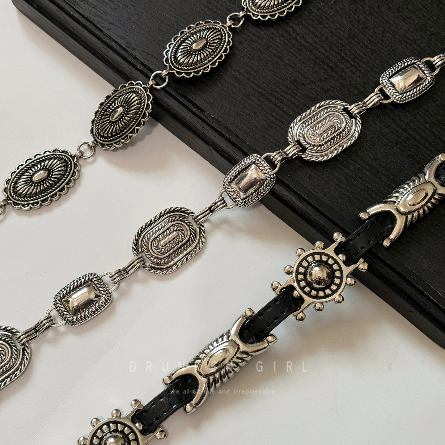 波西米亚金属花朵皮带腰链女小众高级感细腰带复古民族风辣妹配饰