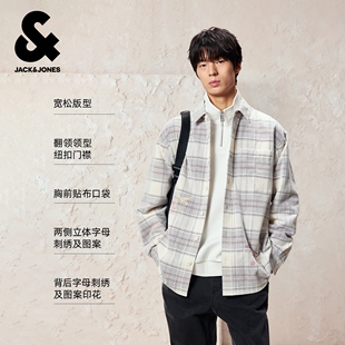 2026年潮流纯棉宽松字母刺绣小格纹印花长袖 衬衫 春季 杰克琼斯男装