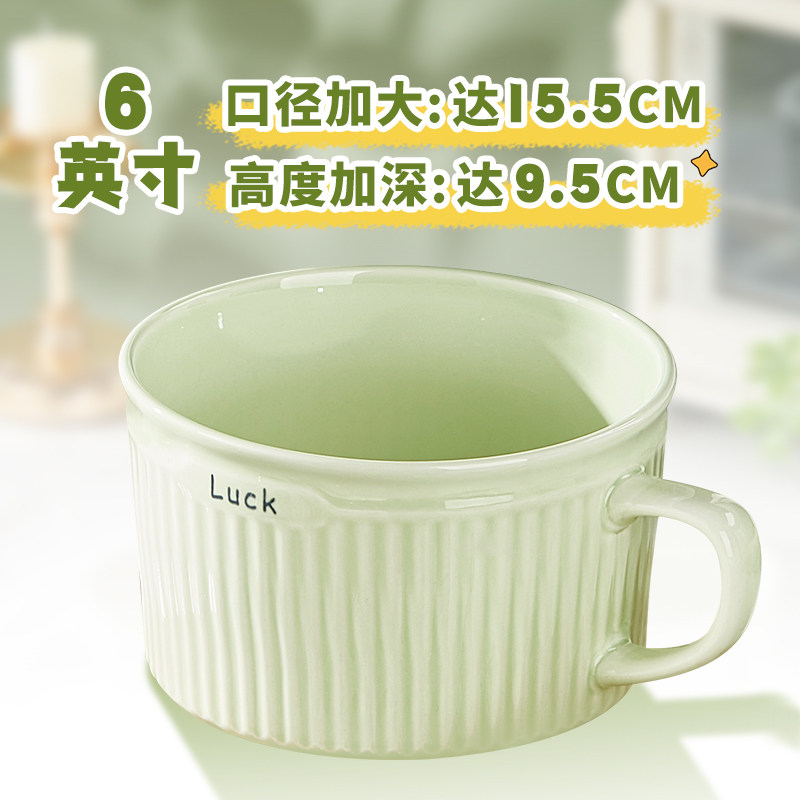 奶油风陶瓷泡面碗带盖勺带手柄个人专用方便面碗大号汤碗筷套装