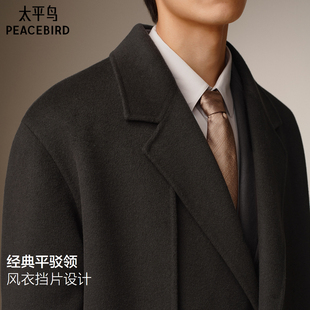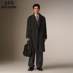 领外套羊毛混纺大衣 含山羊绒西装 太平鸟男装 休闲毛呢大衣男长款